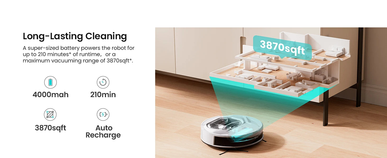 • 4. 210 Minutes Runtime: Coverage of up to 3870 sq ft on a single charge.