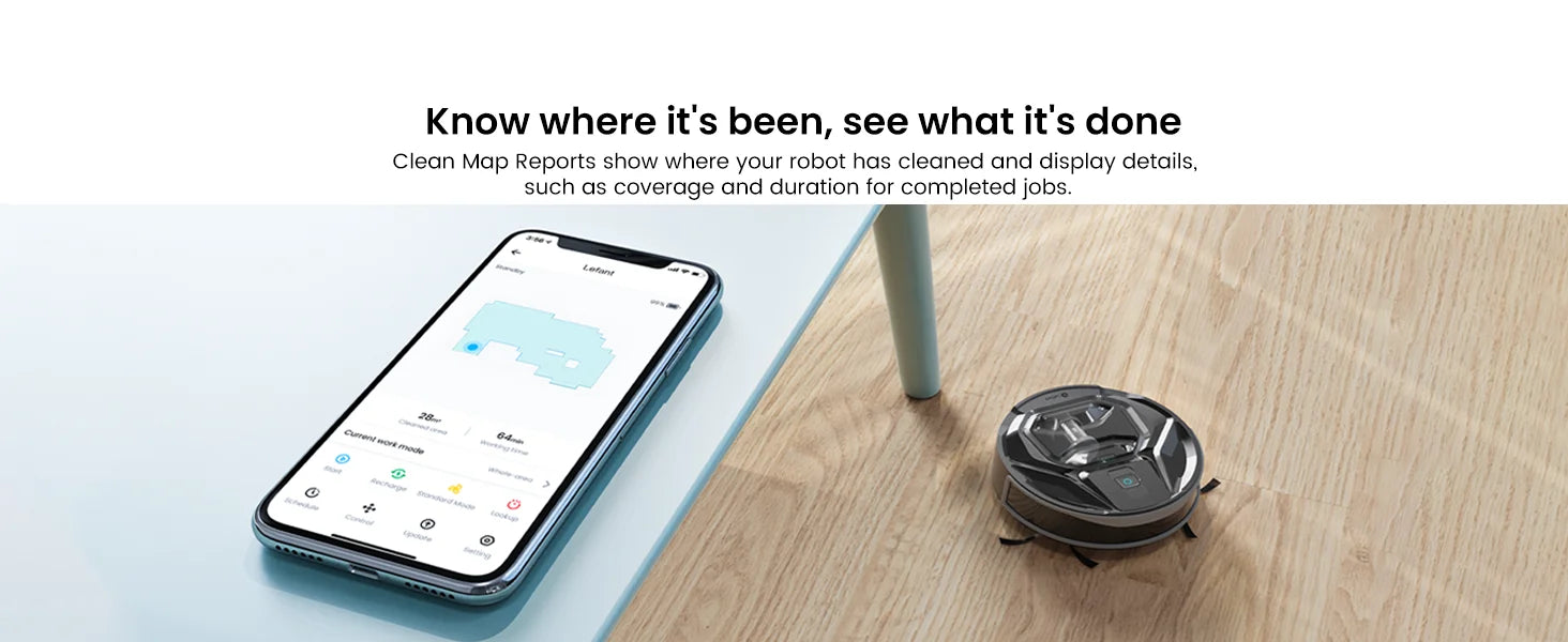 With its slim design, the Lefant M320 glides effortlessly under furniture, reaching those hidden dust bunnies you often miss. Plus, you’ll receive detailed Clean Map Reports to track your robot’s cleaning progress.