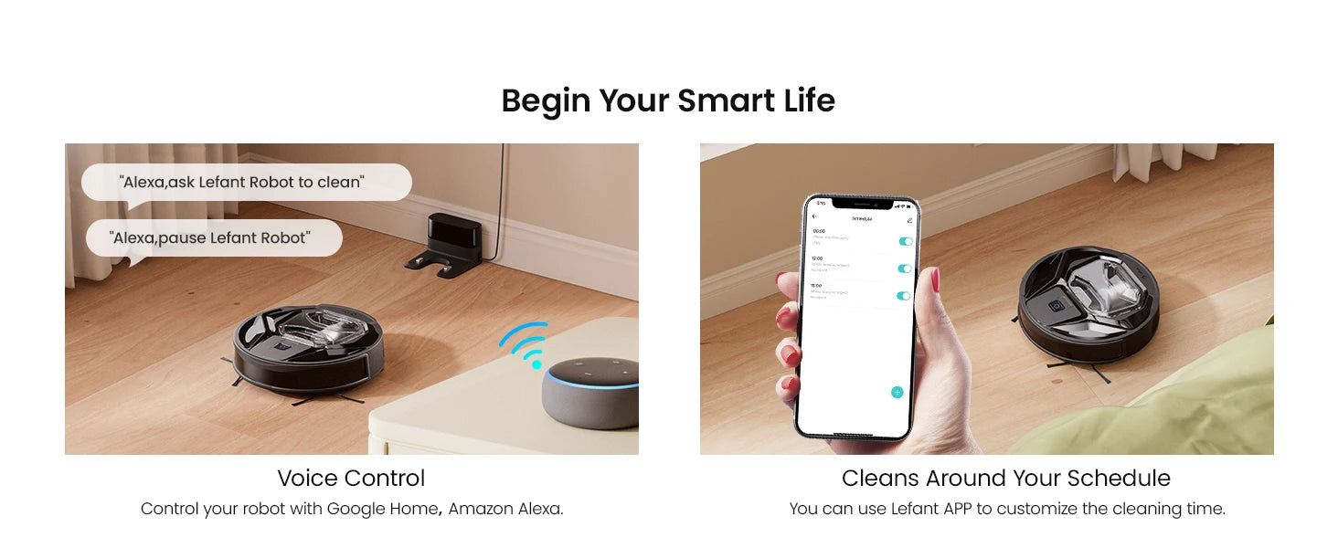 • Voice and App Control: Manage your cleaning schedule with ease through Alexa, Google Home, or the Lefant app, making it convenient to fit into your busy lifestyle.