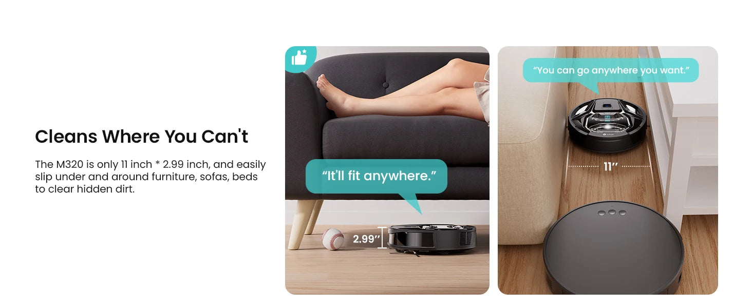 • 7. Advanced Obstacle Avoidance: Utilizing PSD technology, the M320 navigates efficiently around furniture without getting stuck or causing damage.