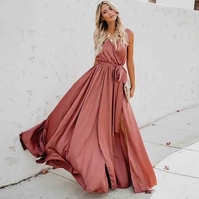Introducing the Elegant V-Neck Sundress Chic Party Club Style Dress, your ultimate go-to for sophistication and flair. This stunning sundress redefines elegance while being perfect for various occasions, from lively parties to casual brunches.