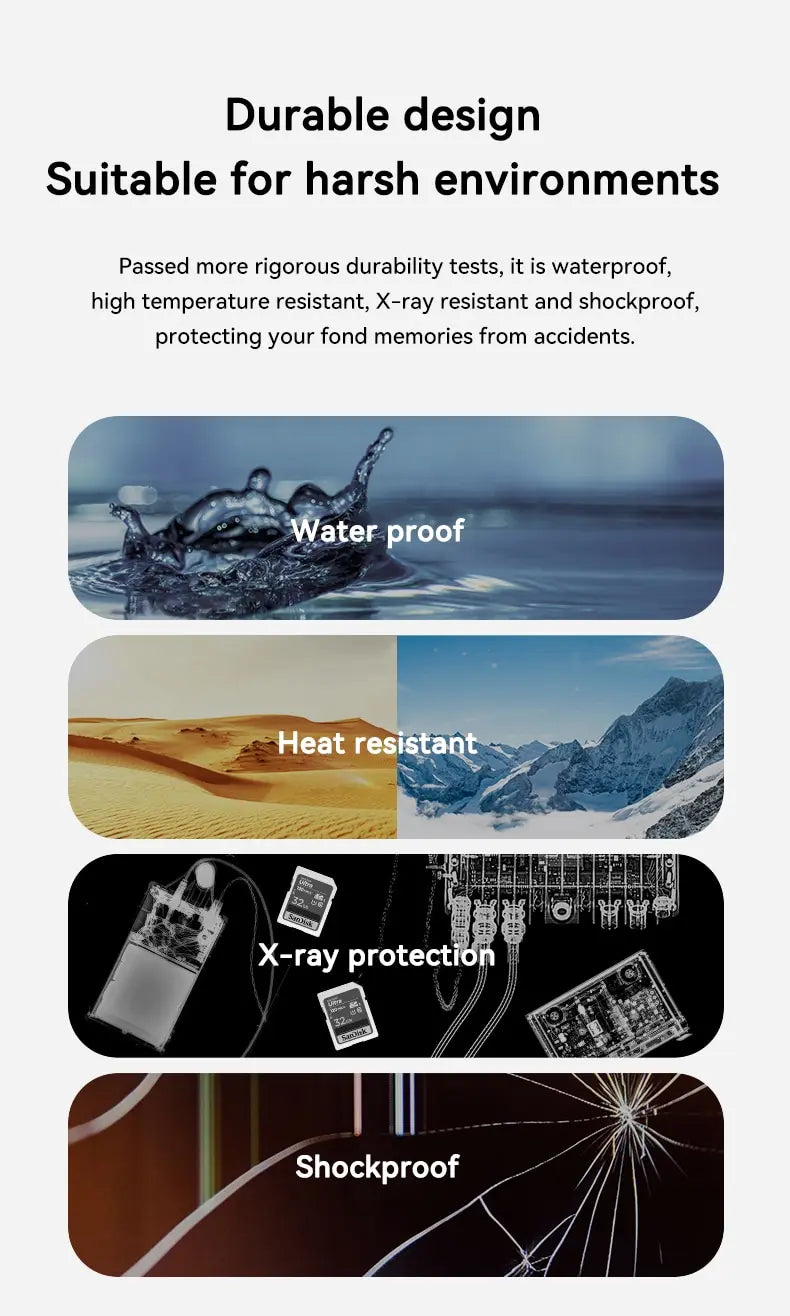 • Durable Design: Waterproof, shockproof, and temperature resistant, ensuring your data is safe in any condition.