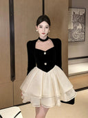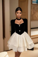 This dress is not just clothing; it's a statement of style and elegance. The combination of velvet and tulle creates a visual experience that is unrivaled. Perfect for various occasions, it captures the essence of sophistication effortlessly.