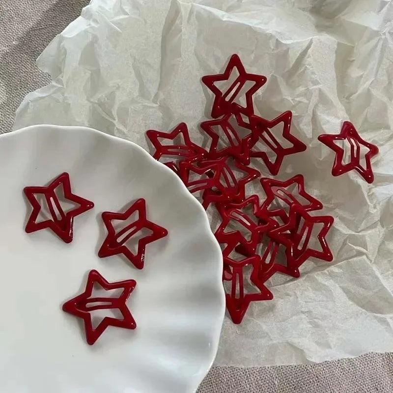 Red Star Waterdrop Barrettes Stylish Hair Clips for Women