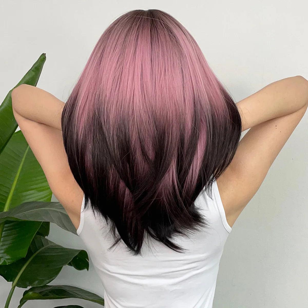 Black Pink Ombre Cosplay Wig Versatile High-Quality Hairpiece