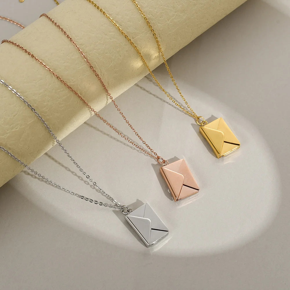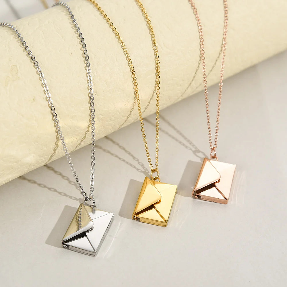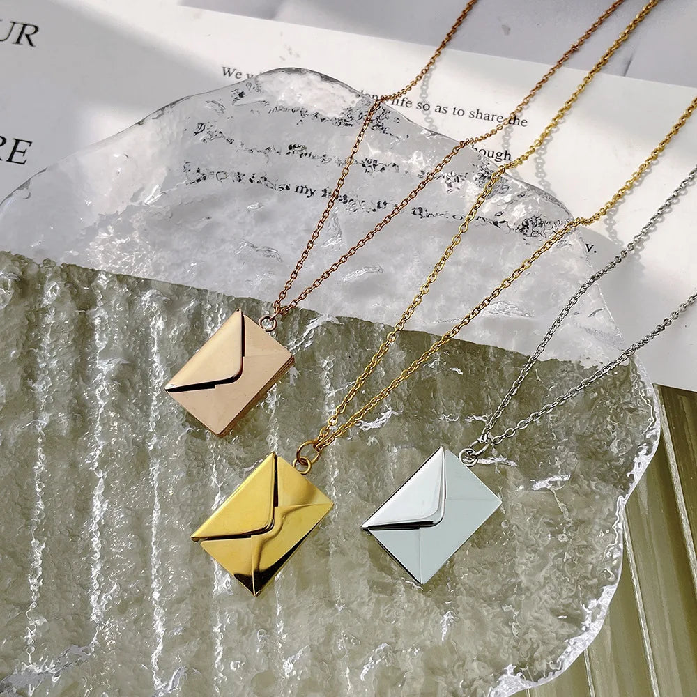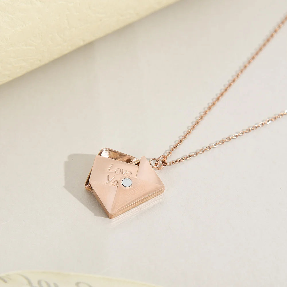 Love Letter Envelope Pendant Necklace Customized Stainless Steel Jewelry for Valentine Day Mother Day Gift
