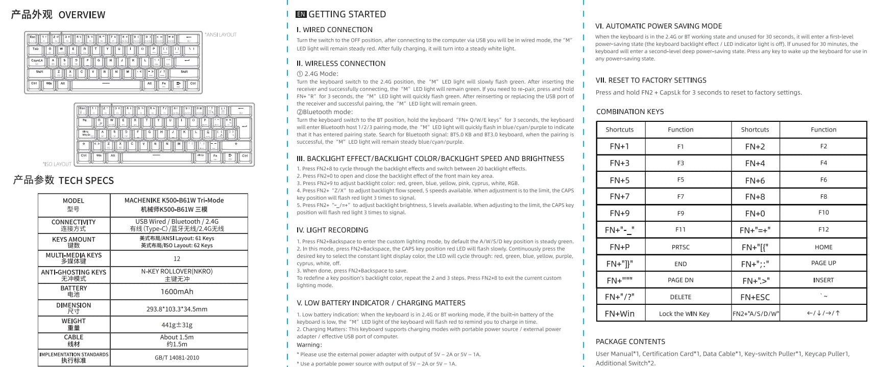 MACHENIKE K500-B61W Wireless Mechanical Keyboard 60% ANSI Layout