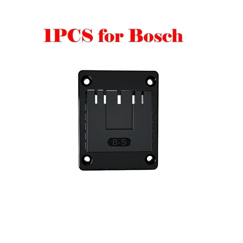 Machine Holder Battery Rack Makita Bosch Dewalt Milwaukee relocates clutter into a tidy, accessible power tool setup. This wall-mount tool bracket securely holds 14.4V and 18V batteries, ready for quick deployment. Lightweight, durable plastic with a secure clip; versatile wall or ceiling mounting for DIYers and pros.