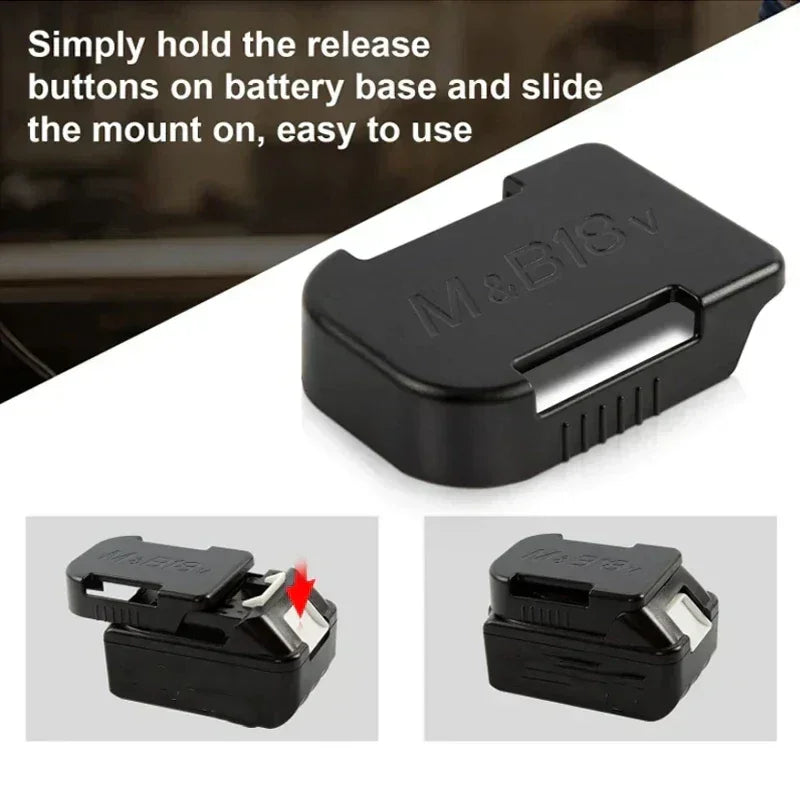 Machine Holder Battery Storage Rack Makita Bosch Milwaukee keeps 14.4V and 18V batteries neatly organized, delivering quick access, reducing downtime, and streamlining professional workshops. This compact, lightweight rack features a secure locking mechanism, durable plastic construction, and versatile mounting for walls, ceilings, or inverted setups.