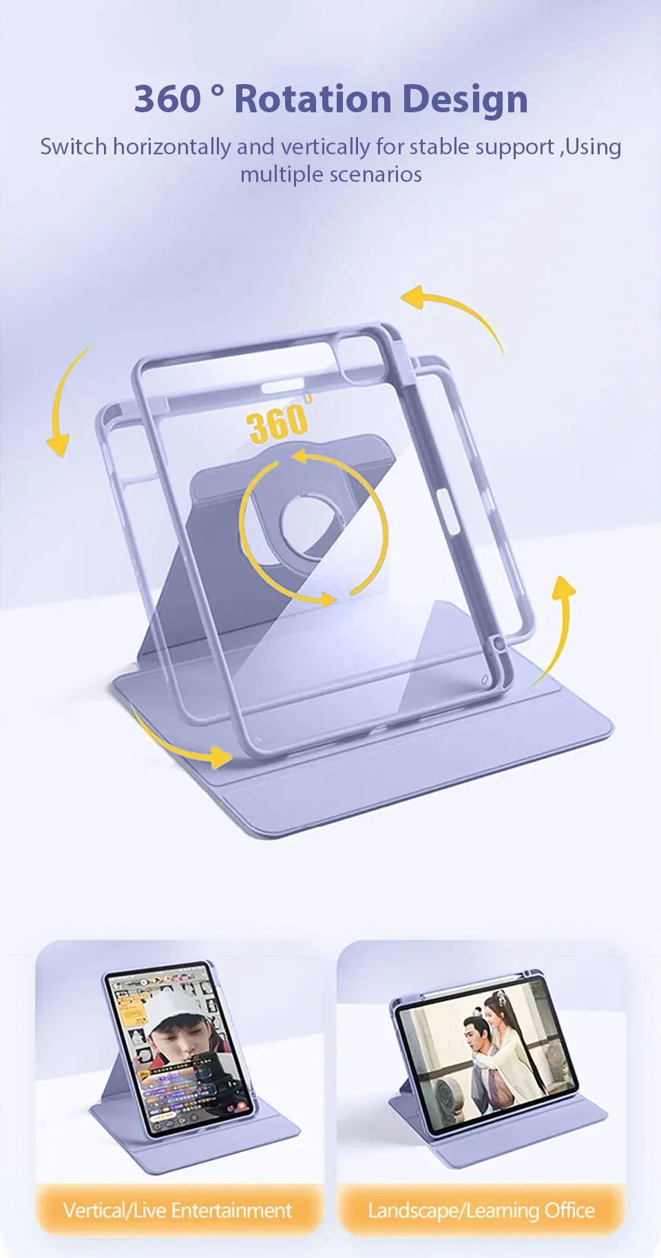 • 1. 360° Rotation Design: Effortlessly switch between landscape and portrait modes for the perfect viewing angle.