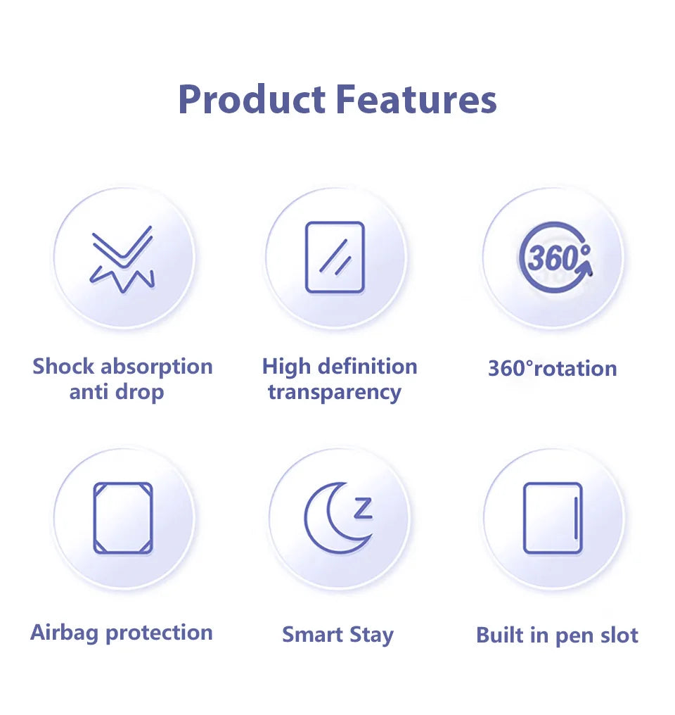 • 4. Smart Wake-Up/Sleep Function: Automatically wakes your device upon opening and puts it to sleep when closed, conserving battery life.