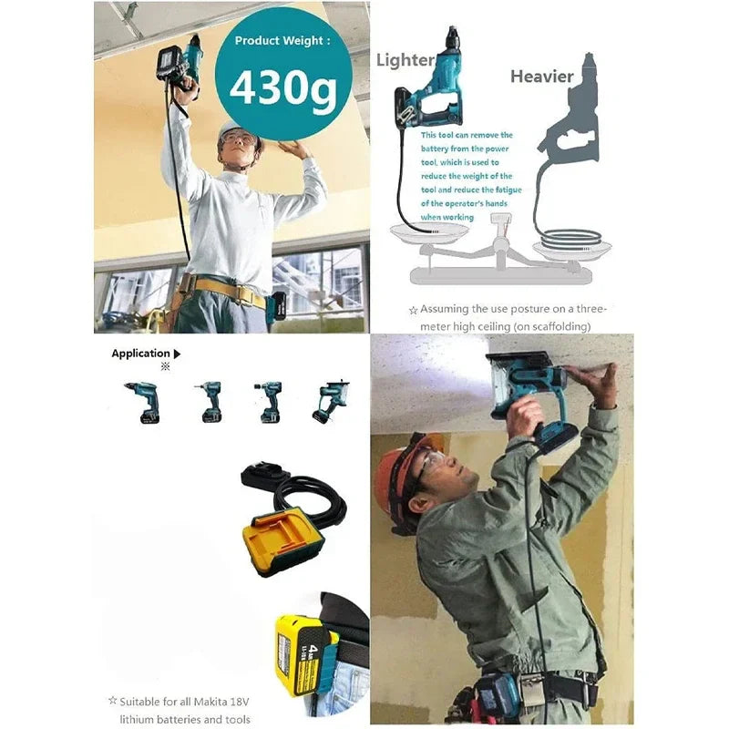 Transform your power tool experience with the 18V Battery Extension Cord for Makita Bosch Milwaukee DeWalt. This essential accessory is designed specifically for 18V lithium batteries, providing seamless connectivity that allows you to work without the interruptions of frequent battery changes.