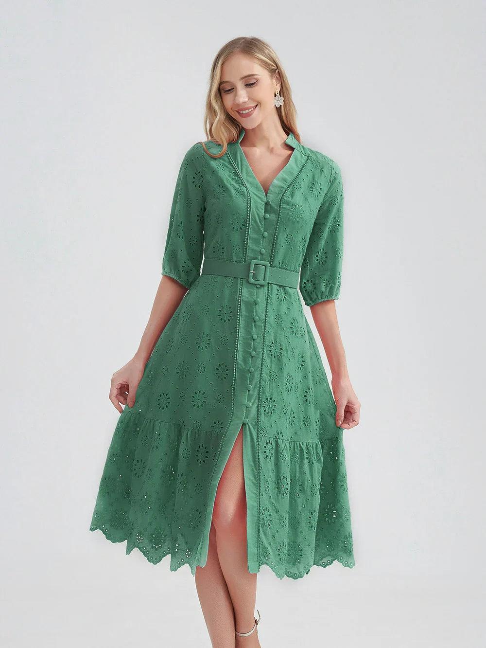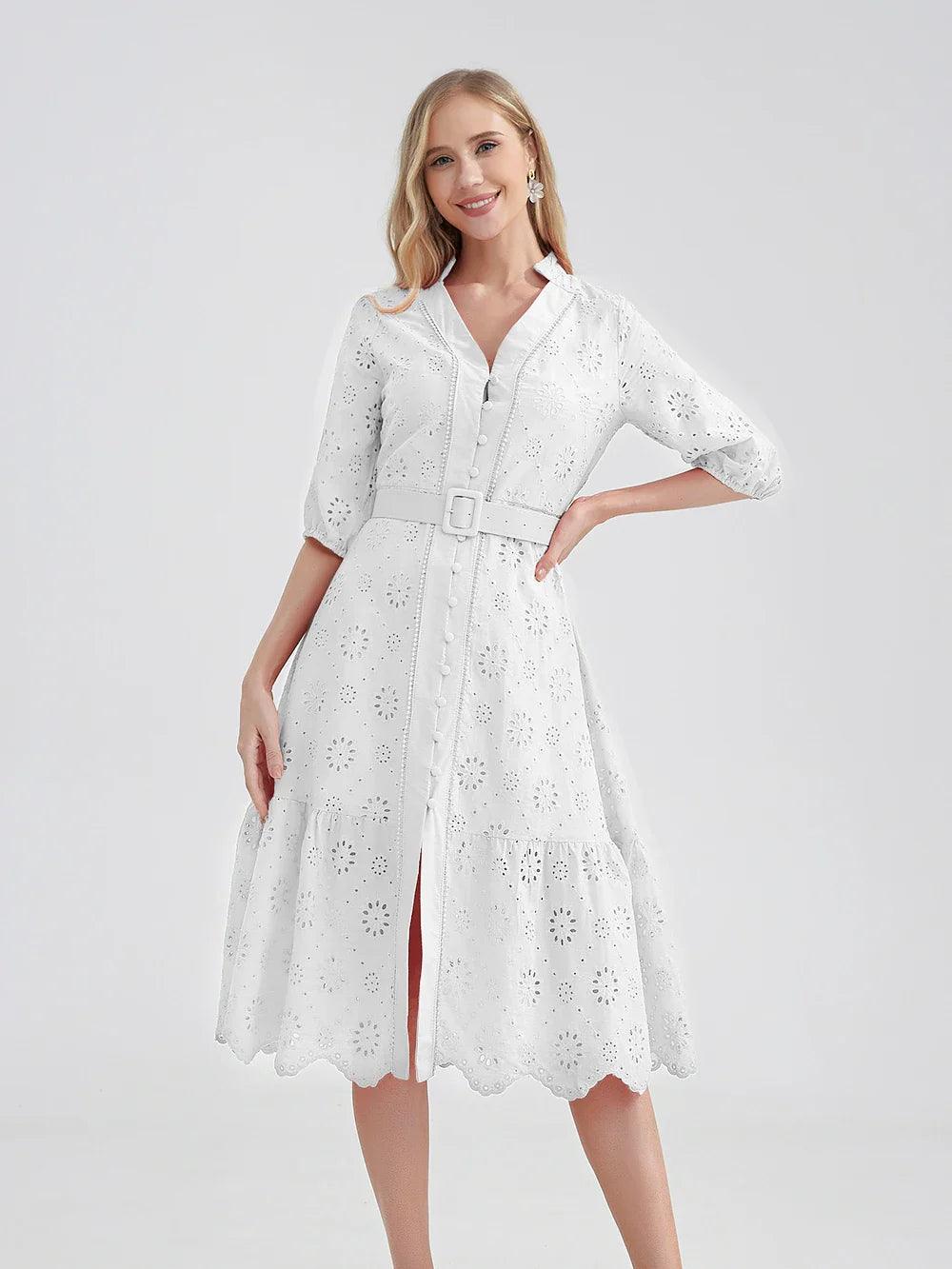 Marwin Cotton Hollow Out Summer Dress Stylish A-Line Dress