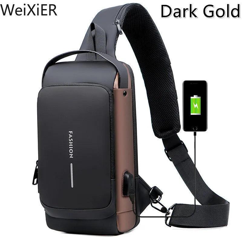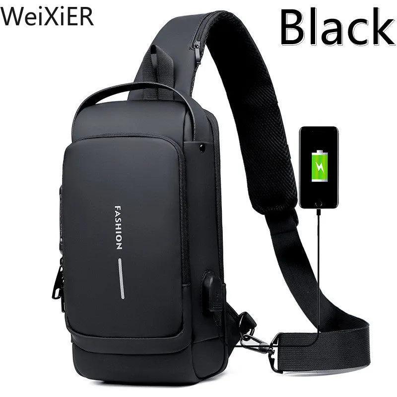 Anti Theft Chest Bag Stylish Waterproof Crossbody USB Port