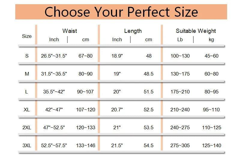 Our slimming shorts come in sizes S, M, L, XL, 2XL, and 3XL to suit all body types.