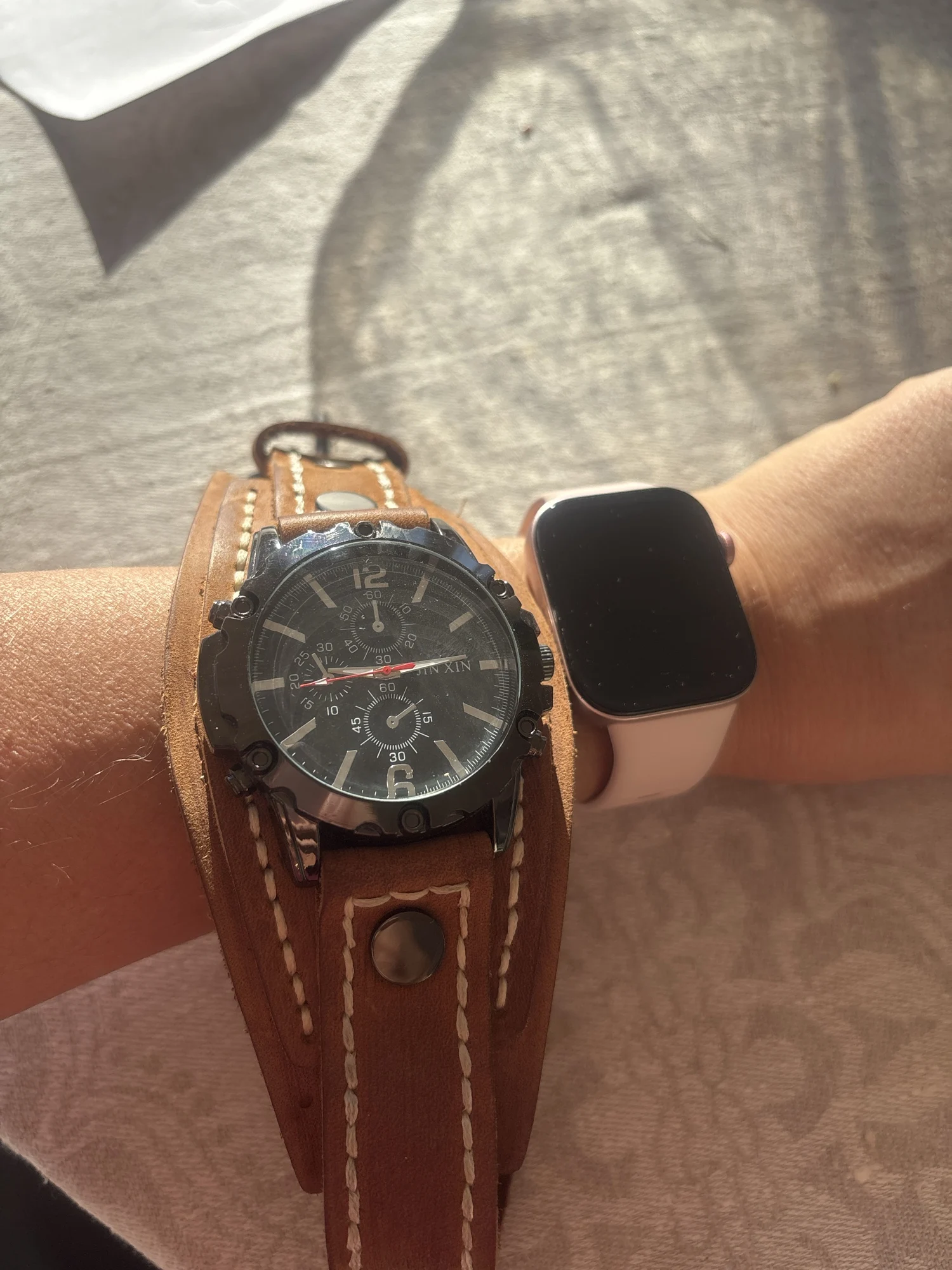 Punk Style Quartz Wristwatch With Wide Cowhide Bracelet