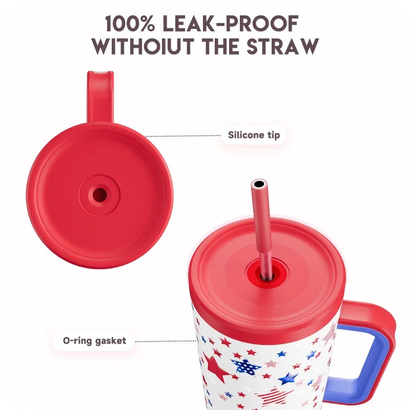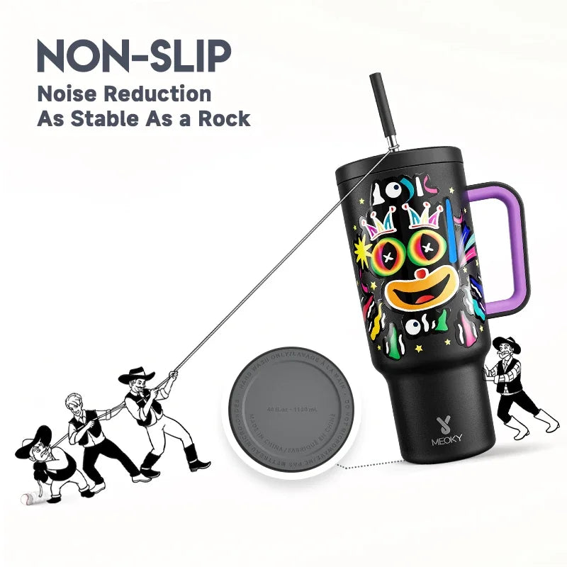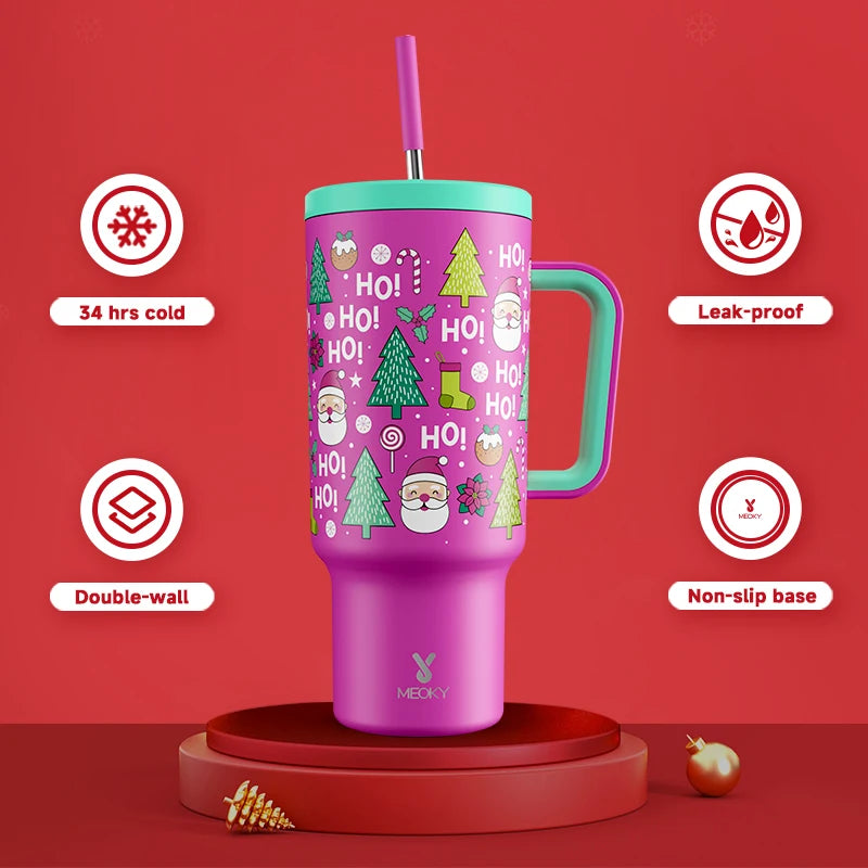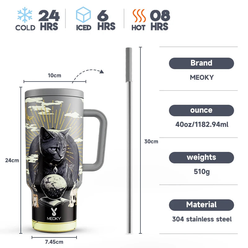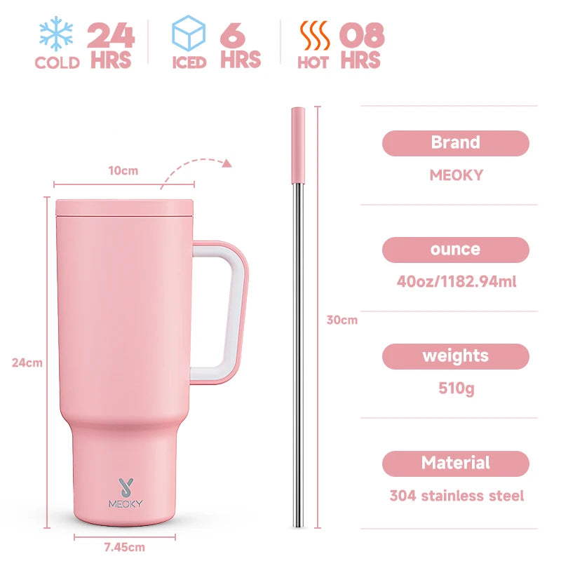 Meoky 40oz Tumbler Handle Straw Stainless Steel Cup Gift
