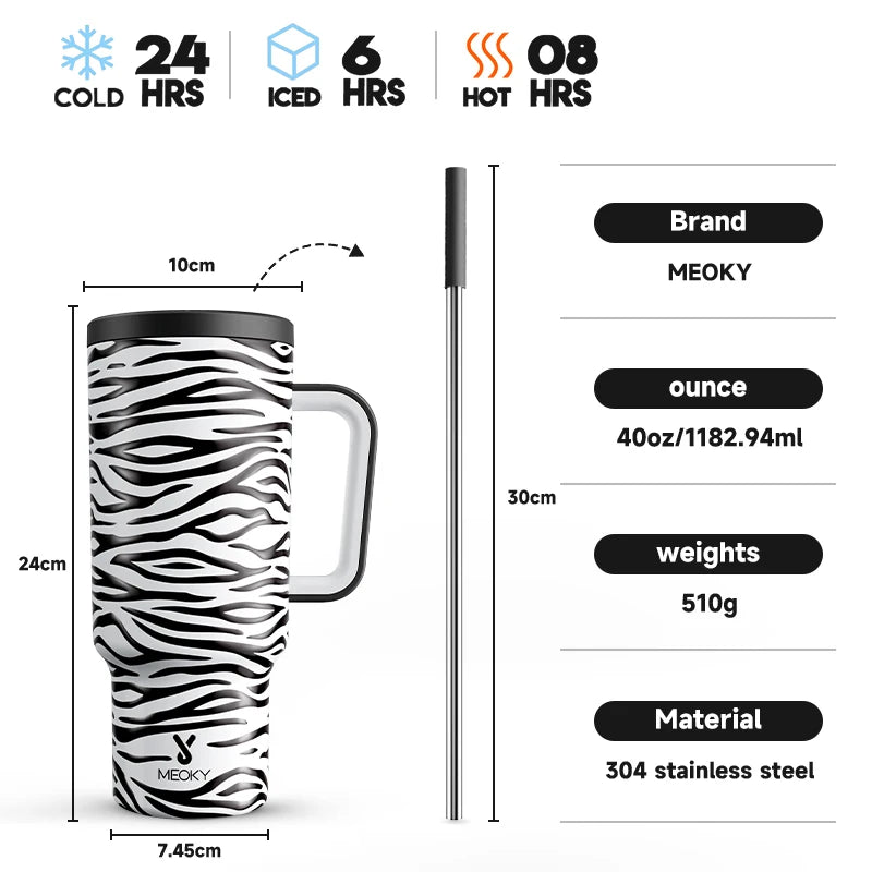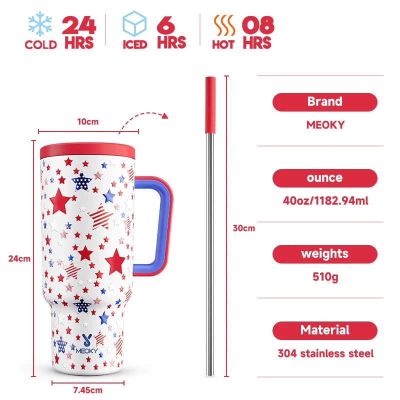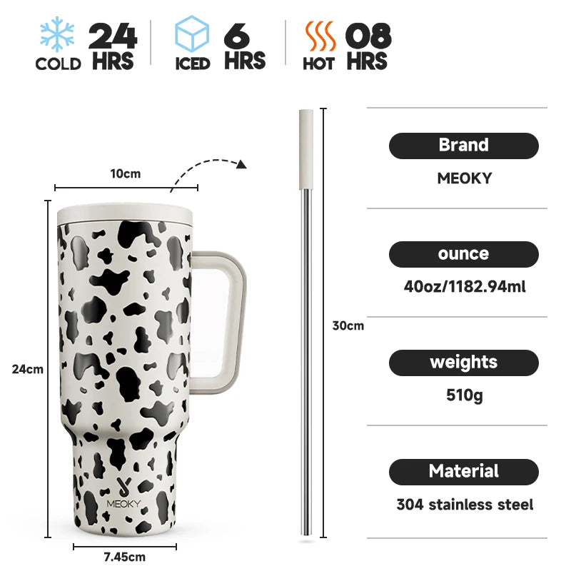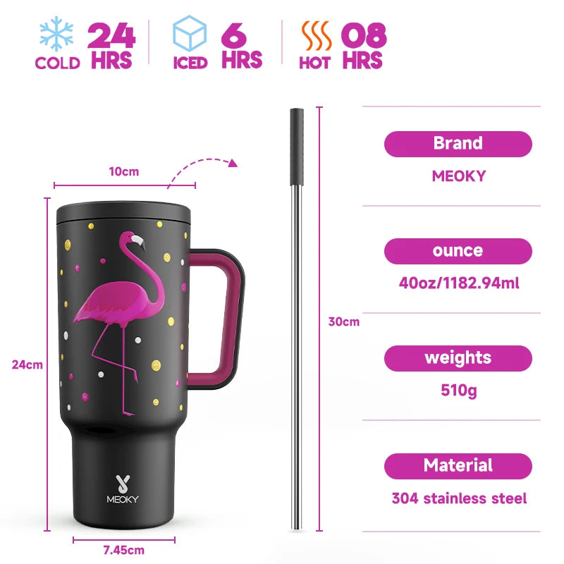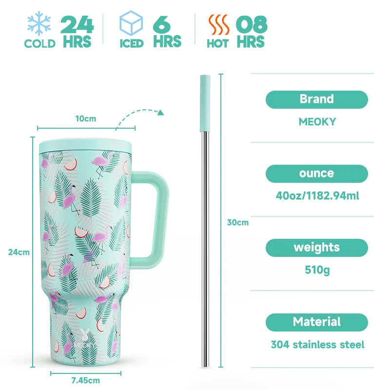 Don't wait any longer! Order now and experience hydration like never before with the Meoky 40oz Tumbler Handle Straw Stainless Steel Cup Gift!
