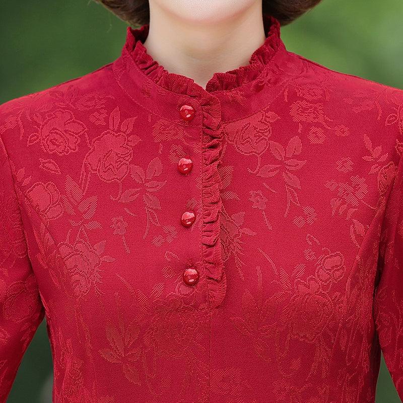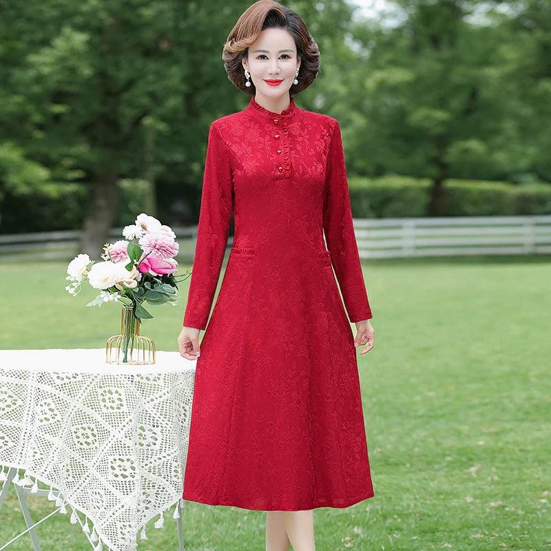 Middle-Aged Jacquard Dress Stylish Autumn Essential Attire