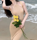 Elegant Ice Silk Backless Sheath Dress Chic Spring Style