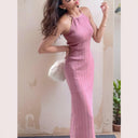 Step into the season with the Elegant Ice Silk Backless Sheath Dress Chic Spring Style, a stunning addition to your wardrobe that perfectly combines sophistication with modern flair. Tailored for the contemporary woman, this dress transitions seamlessly from birthday party dresses to casual outings.