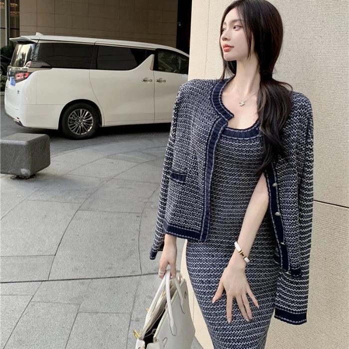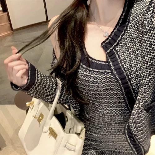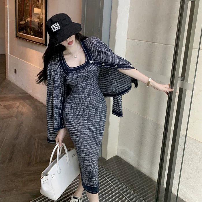 The set includes a beautifully designed cardigan and a suspender skirt, both tailored for a perfect fit that flatters your figure. Make a bold statement in fall fashion and Order now to discover more about this must-have Youthful Vibe Striped Set: Elevate Fall Style Fashion.