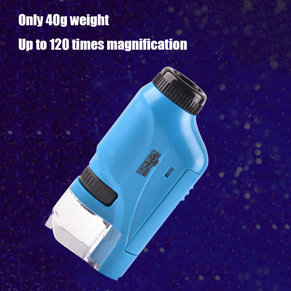 Mini Pocket Microscope Kit 60X-120X LED Light for Kids