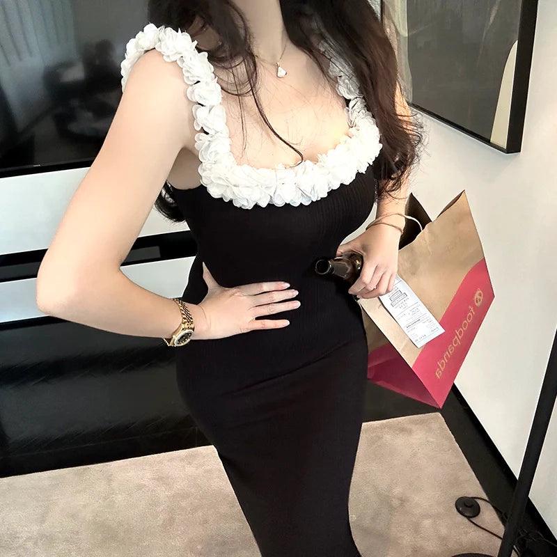 Hand-Sewn Floral Embroidered Bodycon Gown Elegant Design Adjustable Fit