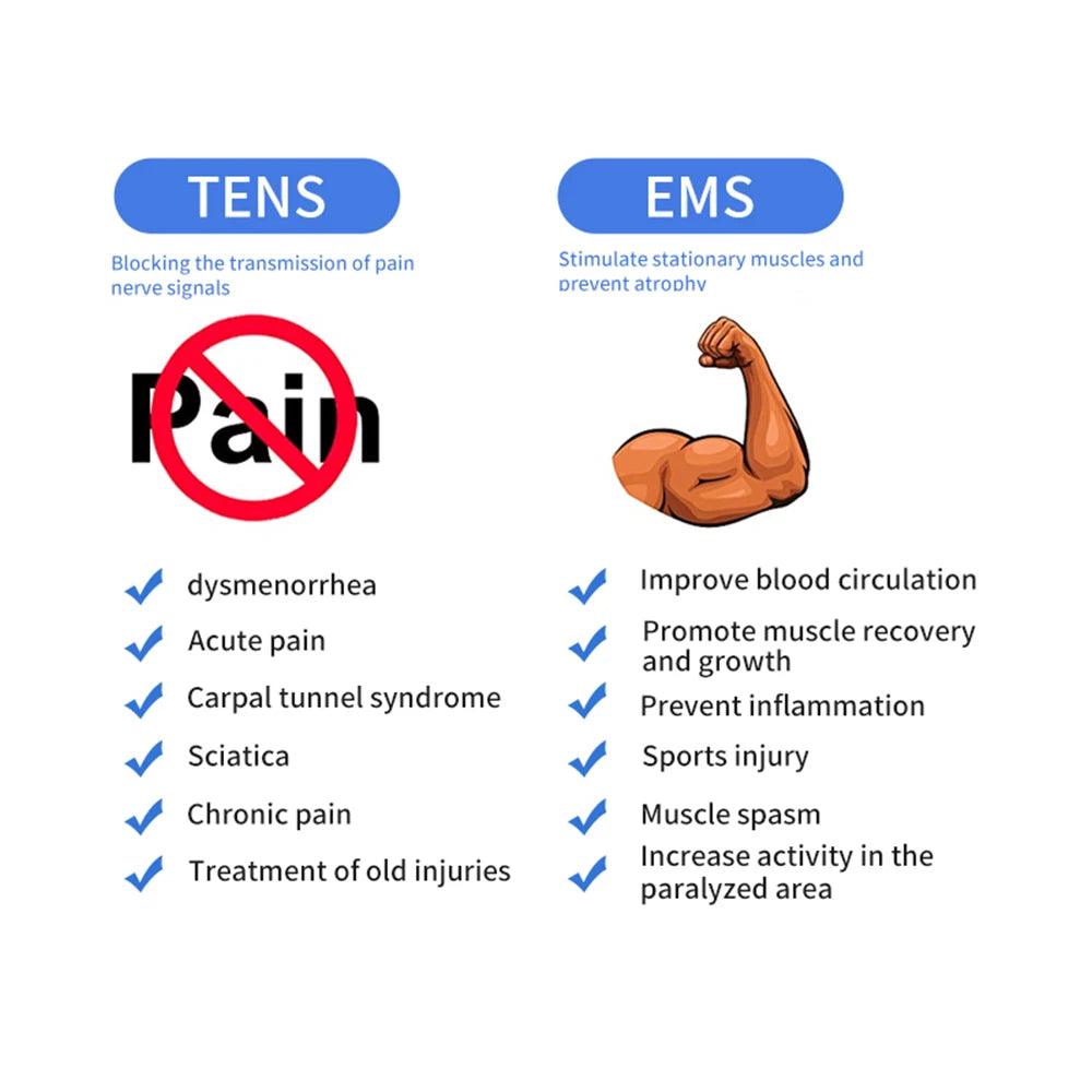 • 25 Massage Modes: Enjoy a selection of 8 TENS modes, 8 EMS modes, and 8 unique massage modes, plus a DIY option for tailored treatments.