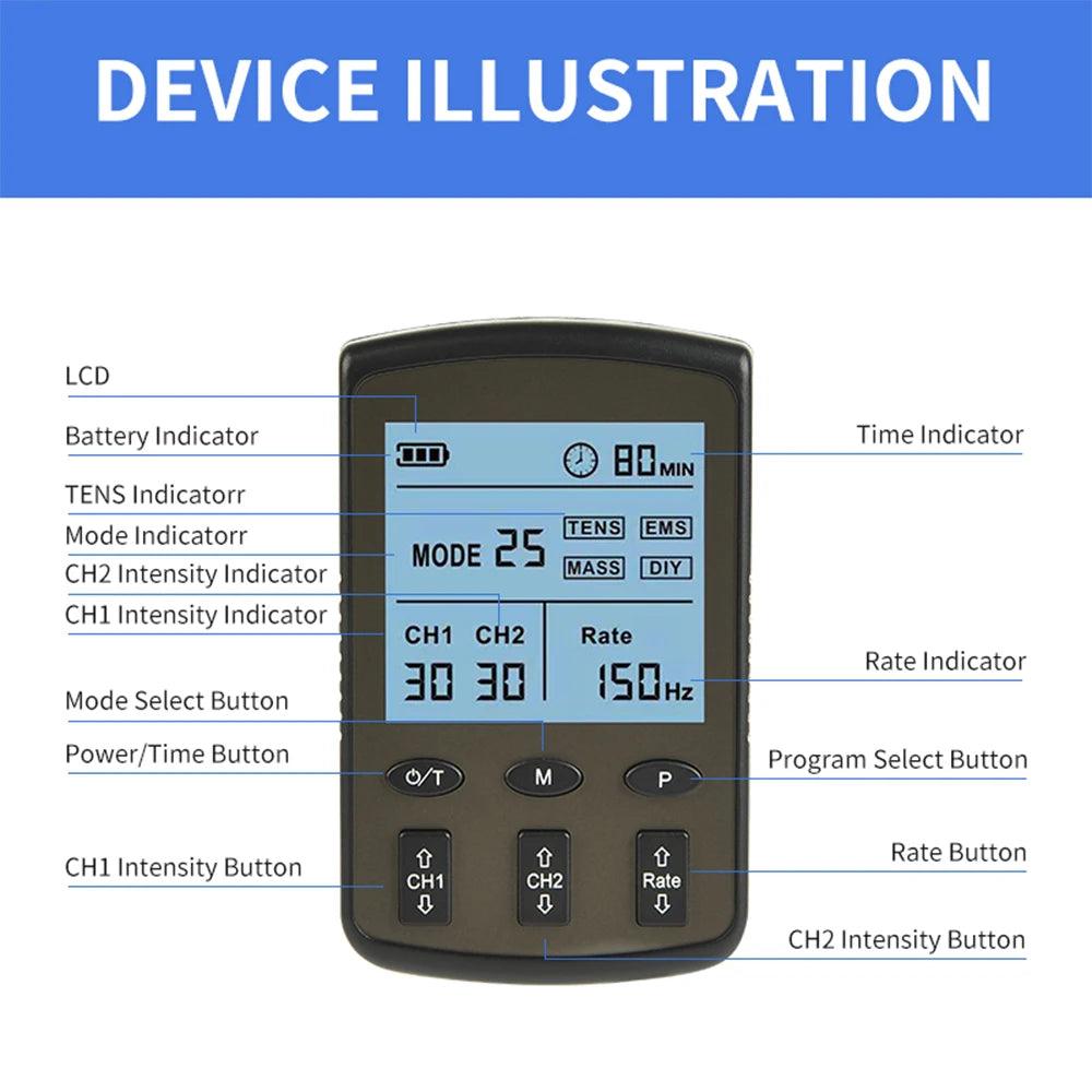 Enhance your well-being today with our premium massager. Enjoy free shipping and experience both quality and performance. Order your 25 Mode TENS Pulse Physiotherapy Apparatus EMS Acupuncture Massager now!