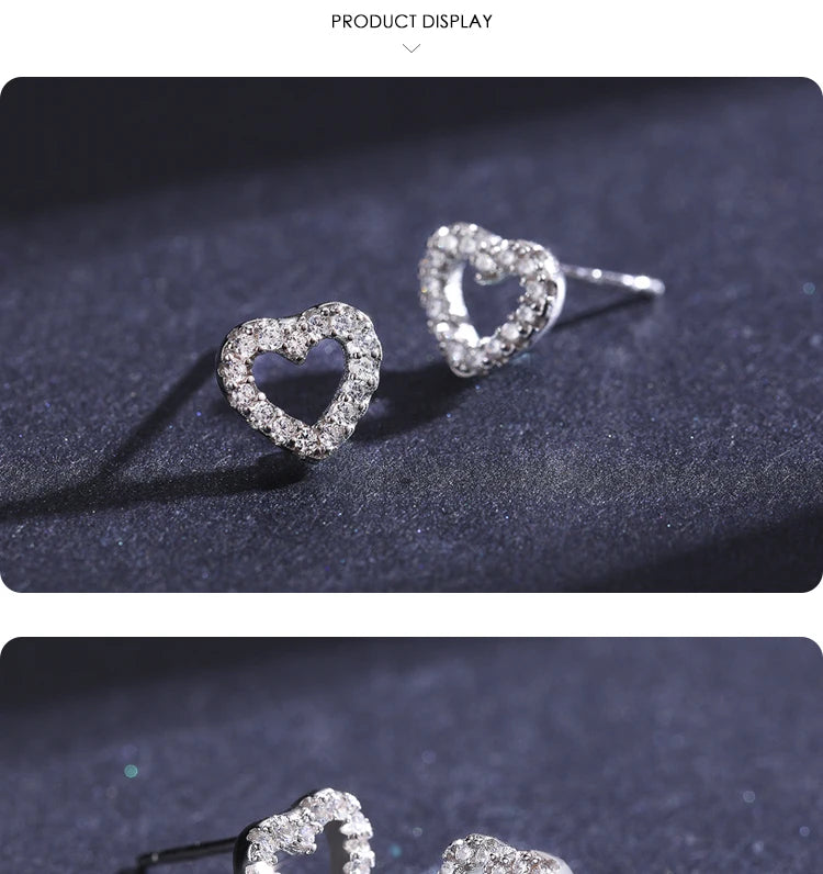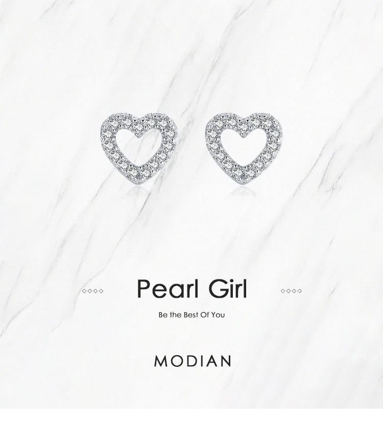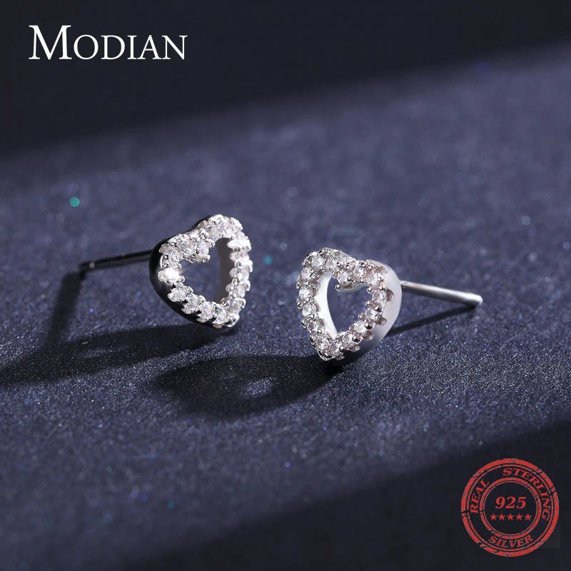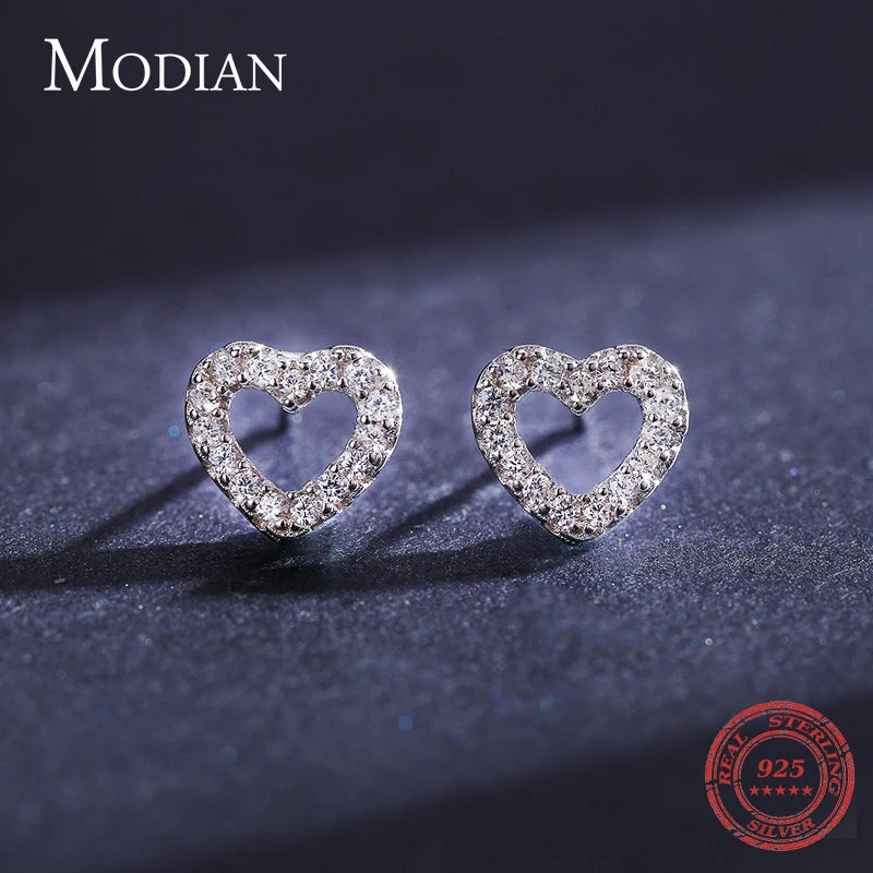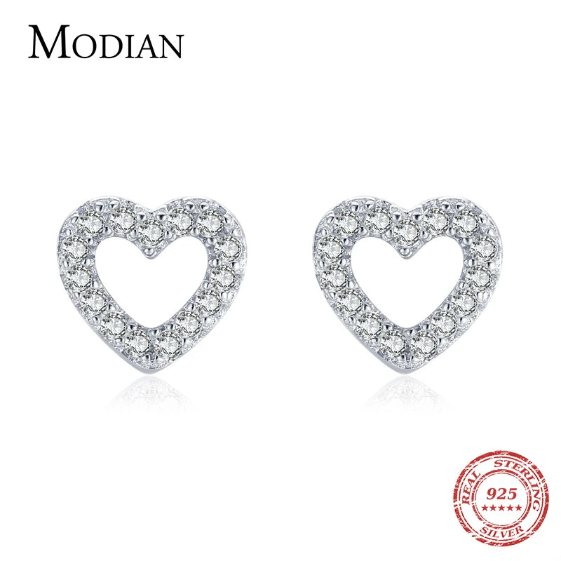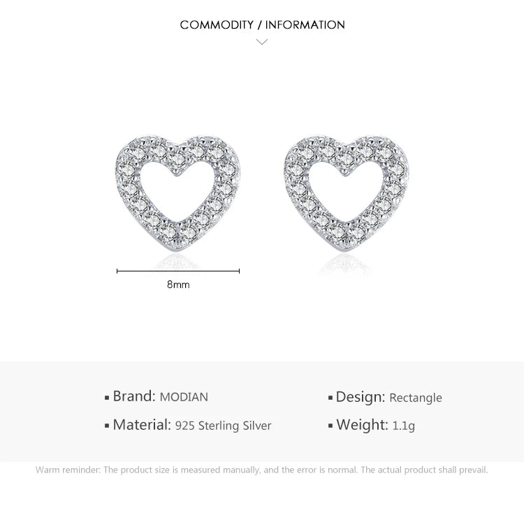 Modian Authentic 925 Sterling Silver Heart Stud Earrings