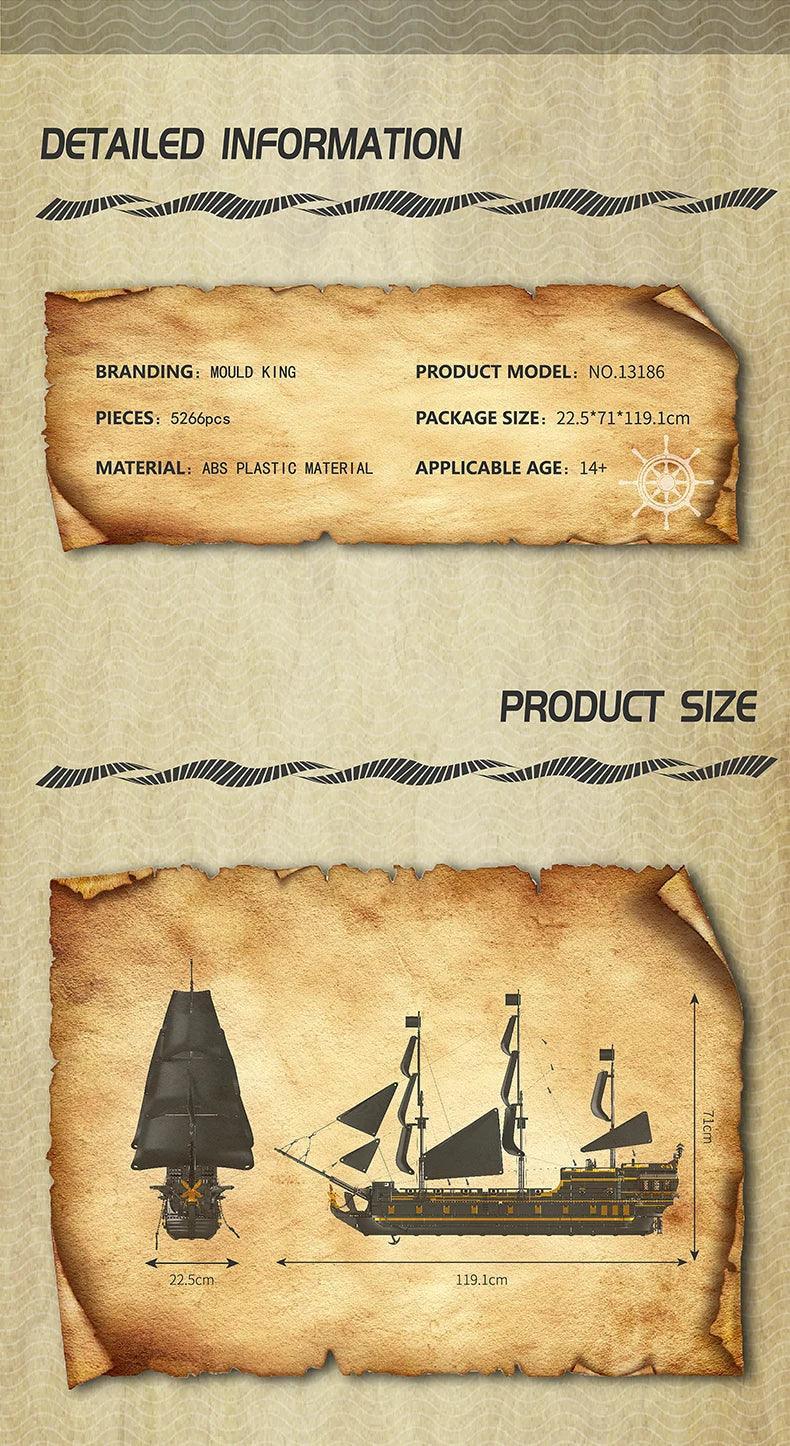Set sail on a thrilling adventure with the MOULD KING 13186 Black Pearl Ship Pirate Ⅱ Building Blocks Set. This impressive construction set features 5266 eco-friendly building blocks, designed to inspire creativity and provide endless hours of imaginative play. Perfect for ages 6 and up, it caters to both budding builders and seasoned enthusiasts.