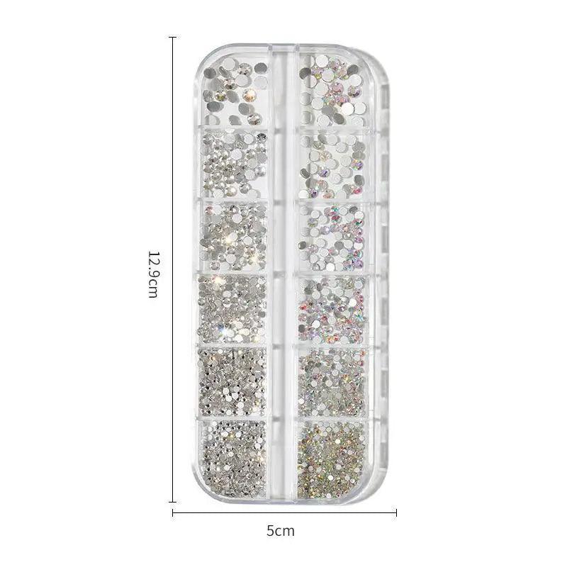 A: Choose between a 6-grid or 12-grid storage box to keep rhinestones, pearls, and gems neatly organized by size and color, enabling quick access and smoother workflow during nail art sessions with the Embellished Nail Art Kit Sparkling Rhinestones Pearls Gems.