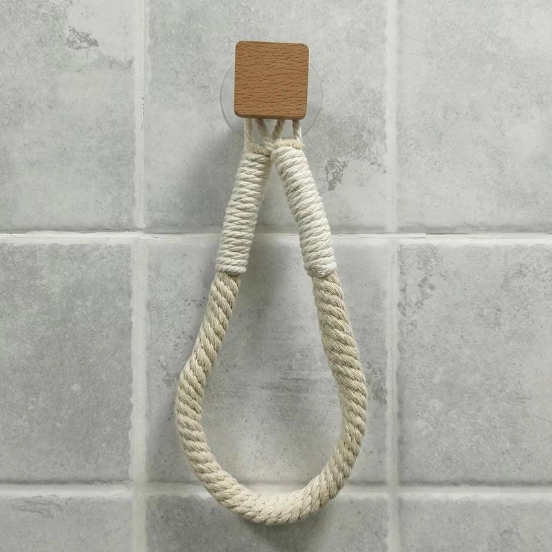 The Beige Hemp Bathroom Rack Stylish Rustic Organizer Stand provides a chic solution for conveniently storing your paper towels, bathroom towels, and toilet paper. It promises to elevate your bathroom experience with both practicality and aesthetics.