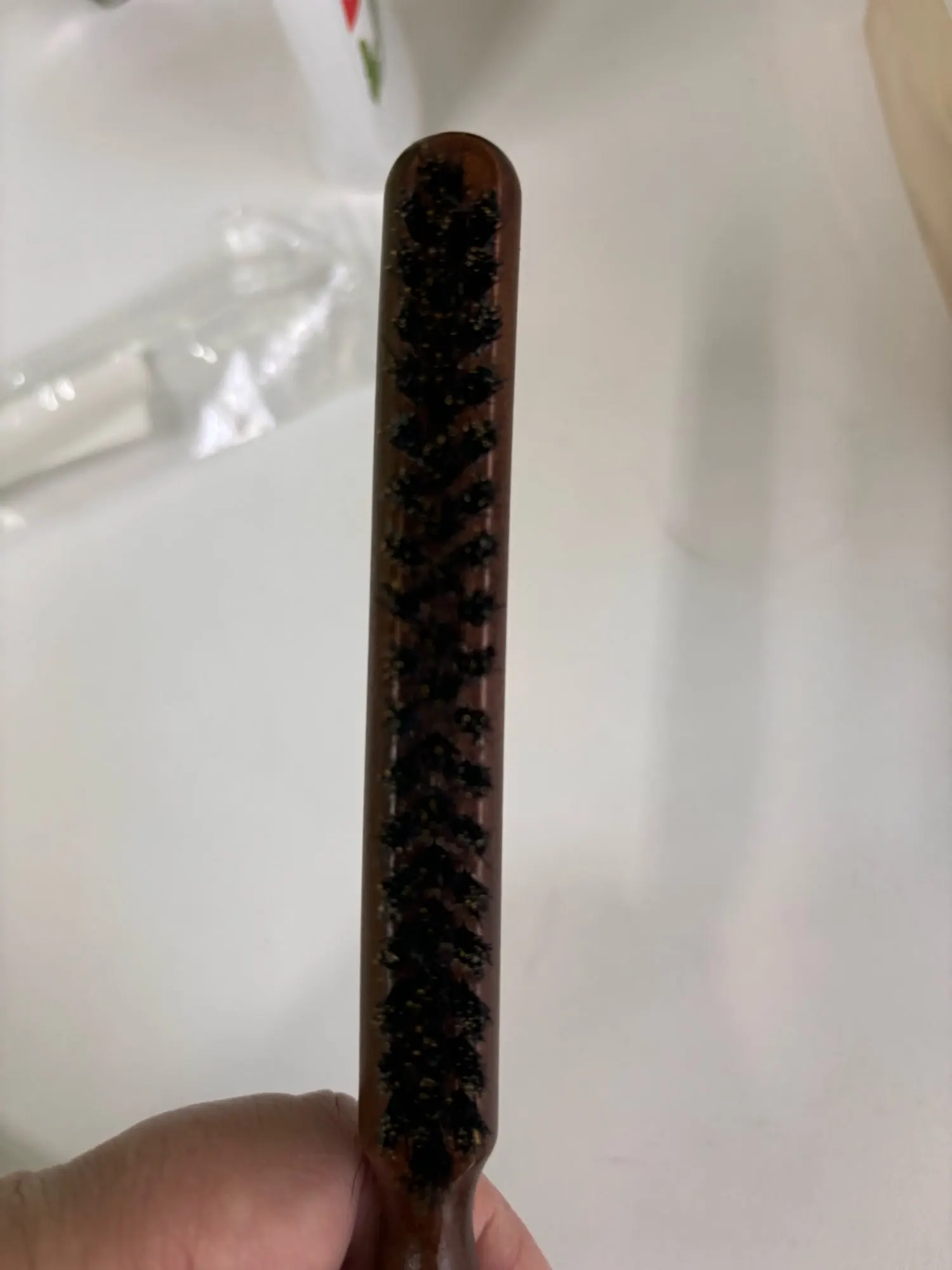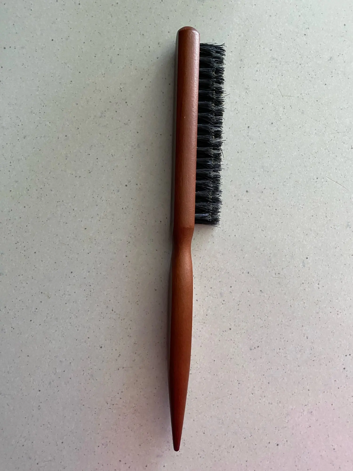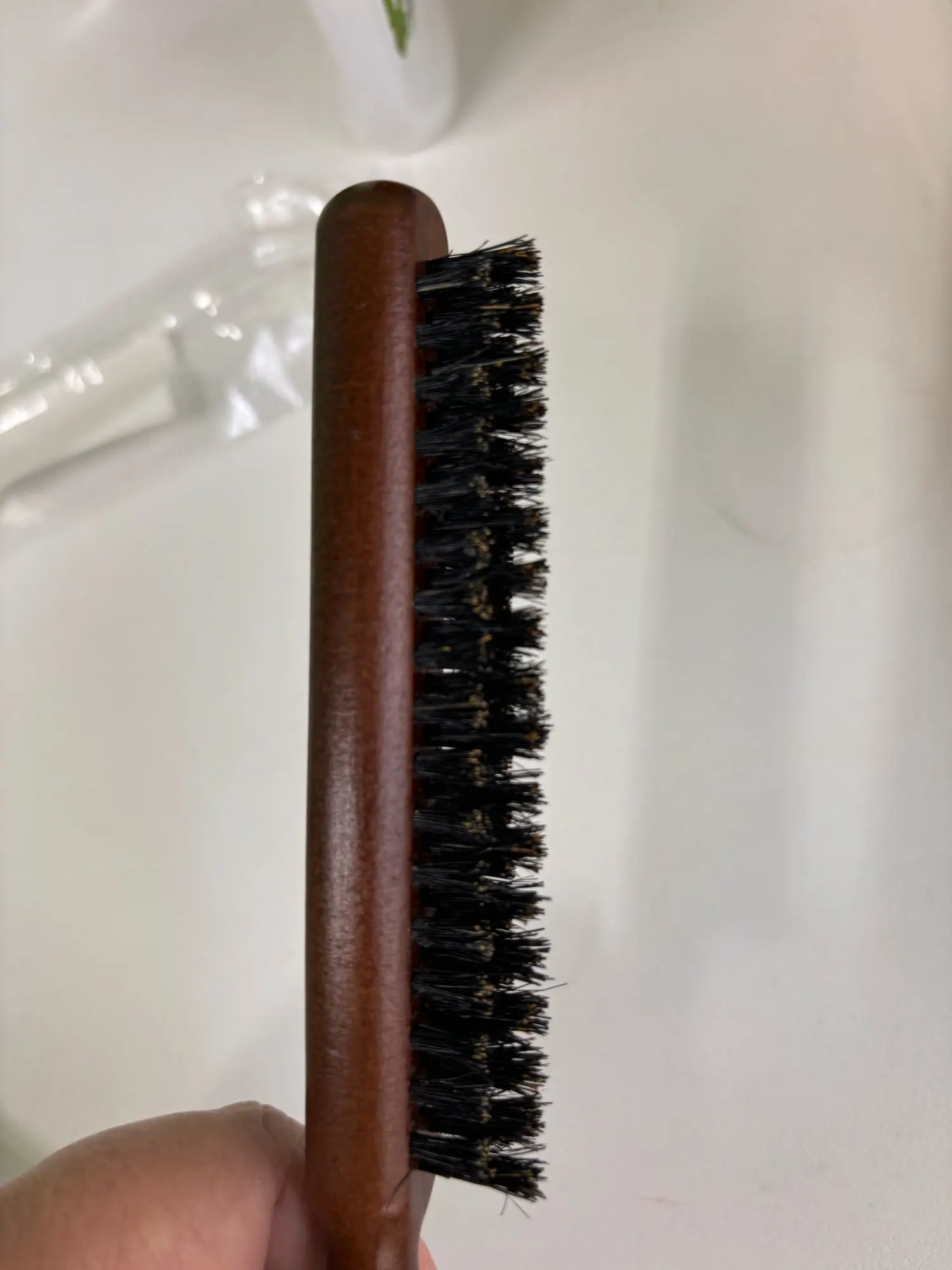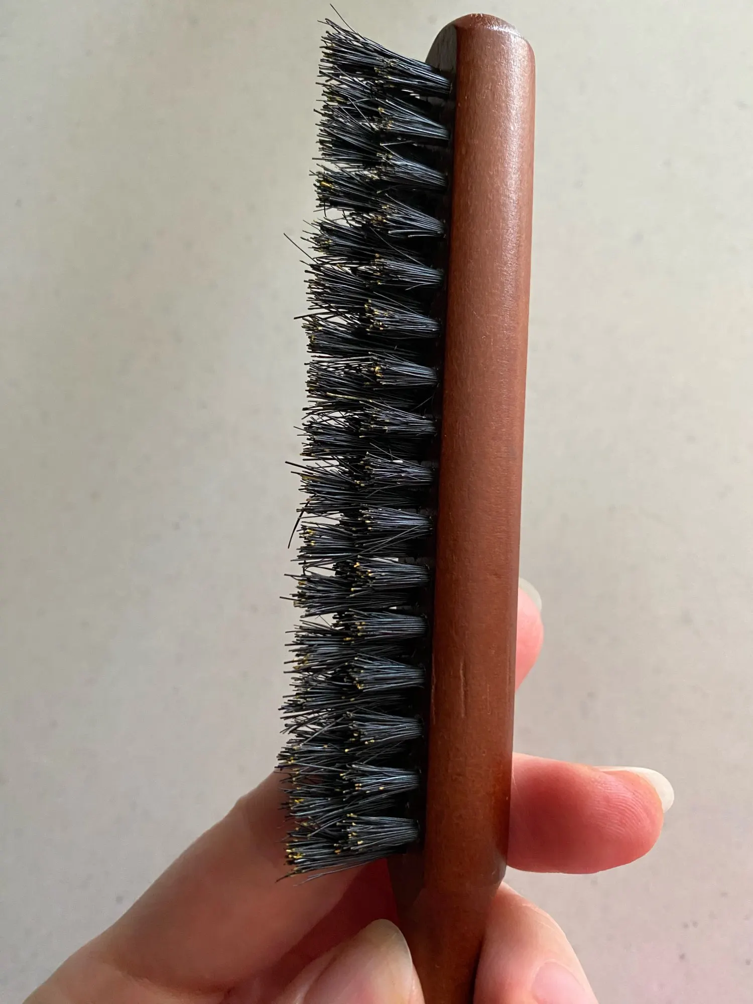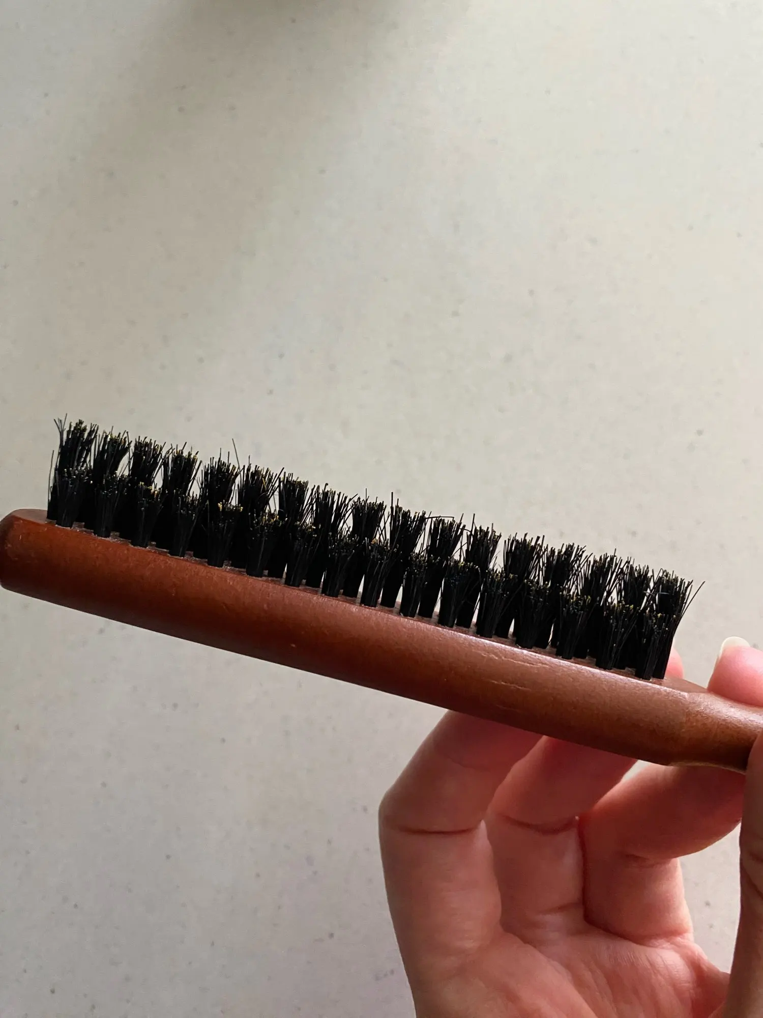 A: After use, wipe clean, remove hair from the bristles, and store in a dry place. Avoid soaking the wood; occasional conditioning of the handle with a suitable oil can preserve the finish and longevity.