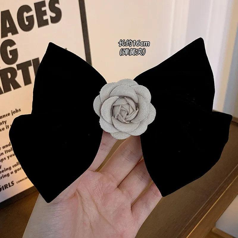 Sophisticated Velvet Bow Hair Pins With Alloy Roses Accents