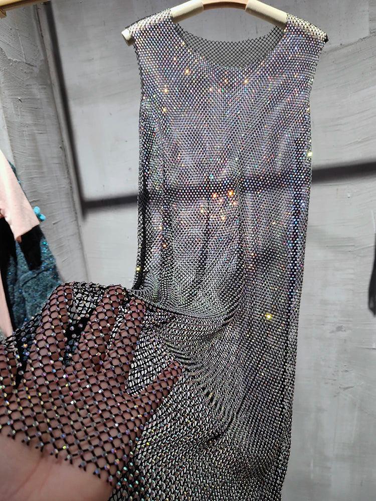 Shop Now! Don't miss your chance to own this exquisite Diamond Mesh Party Dress Elegant Midi Vestido for Events. Elevate your wardrobe with a party dress that embodies elegance and charm. It's time to shine!