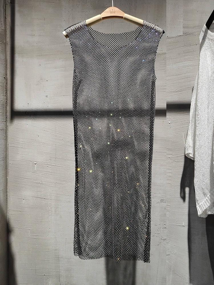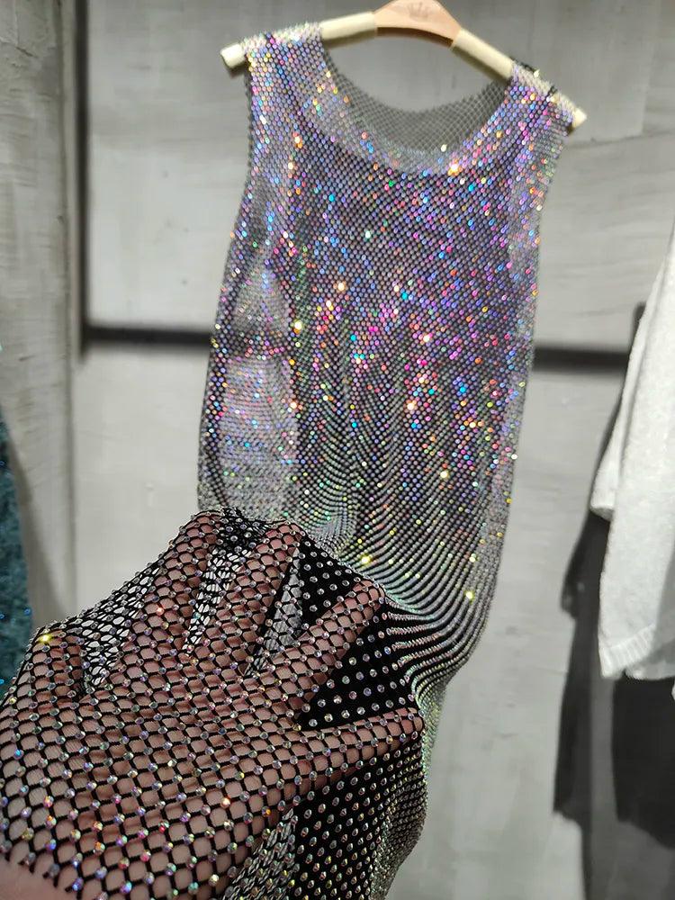 Diamond Mesh Party Dress Elegant Midi Vestido for Events
