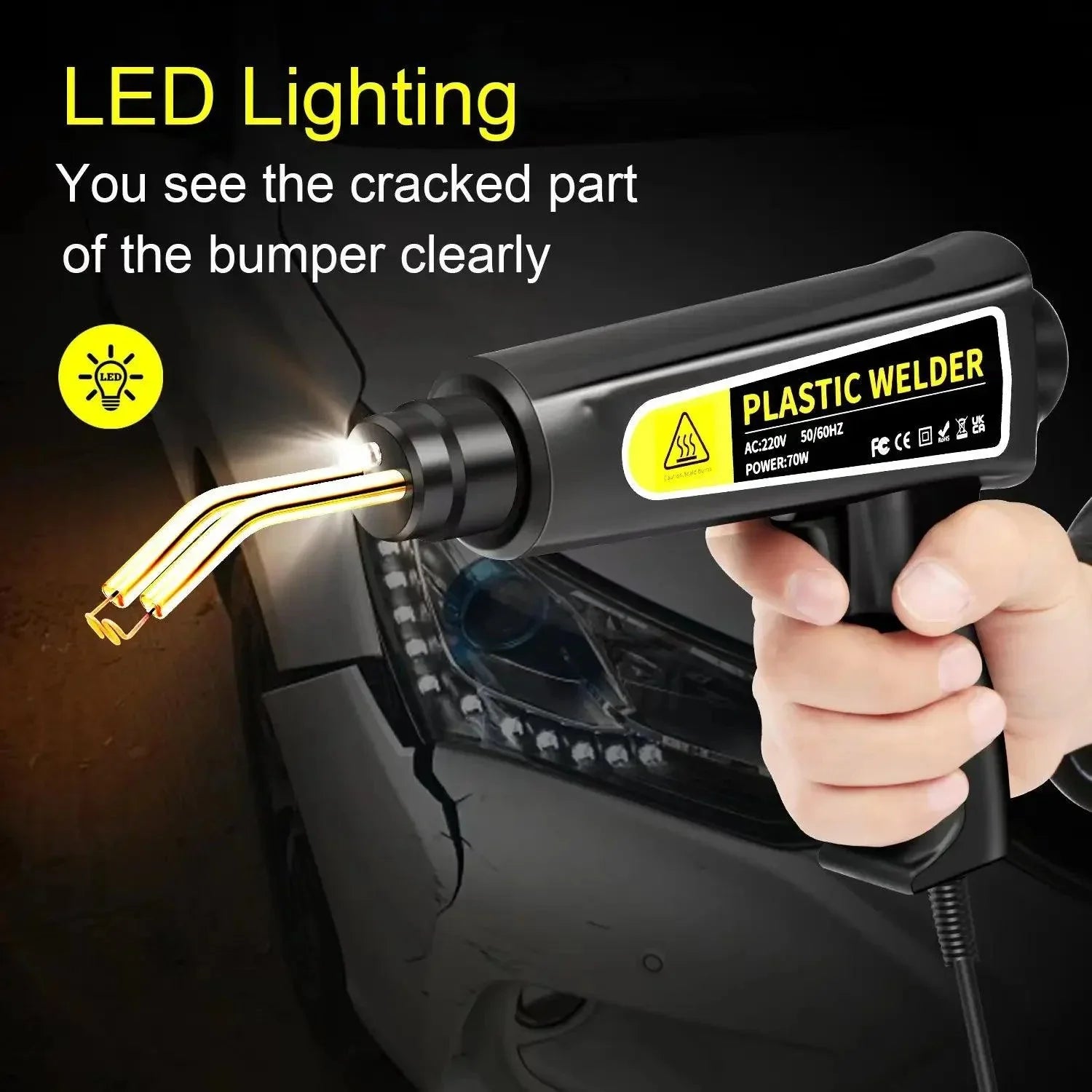 Introducing the Plastic Welding Kit: Powerful Heat Gun for Bumper Repair—your ultimate solution for quick and effective bumper repairs! This high-performance tool features an impressive 70W power output and a lightweight design of just 700g, making it ideal for tackling car bumper cracks and a range of welding tasks.