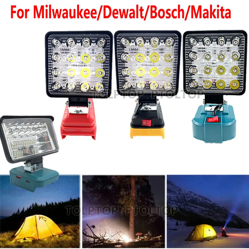 Illuminate your surroundings with our Versatile LED Work Light for Makita DeWalt Milwaukee Bosch. Designed to deliver exceptional brightness and unmatched versatility, this work light is your go-to solution for all lighting needs, whether you’re camping or facing emergencies.