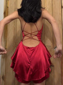 New Red Satin Bodycon Dress Alluring Backless Clubwear