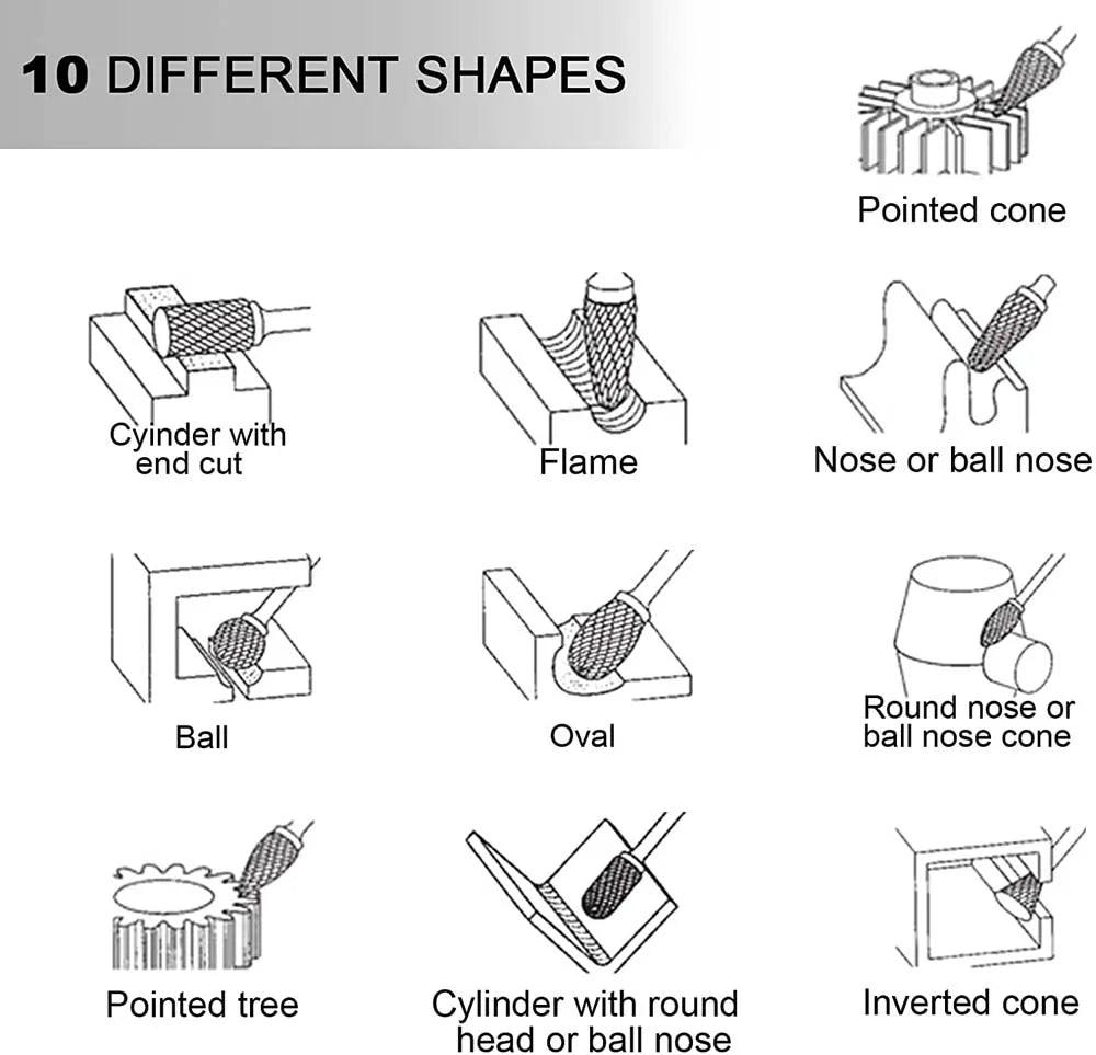 Enhance your crafting experience with the Carbide Rotary Tool Burr Set Premium Tungsten Steel Kit. This professional-grade 10-piece set is designed for both DIY enthusiasts and seasoned professionals, offering exceptional performance and versatility for a variety of applications.