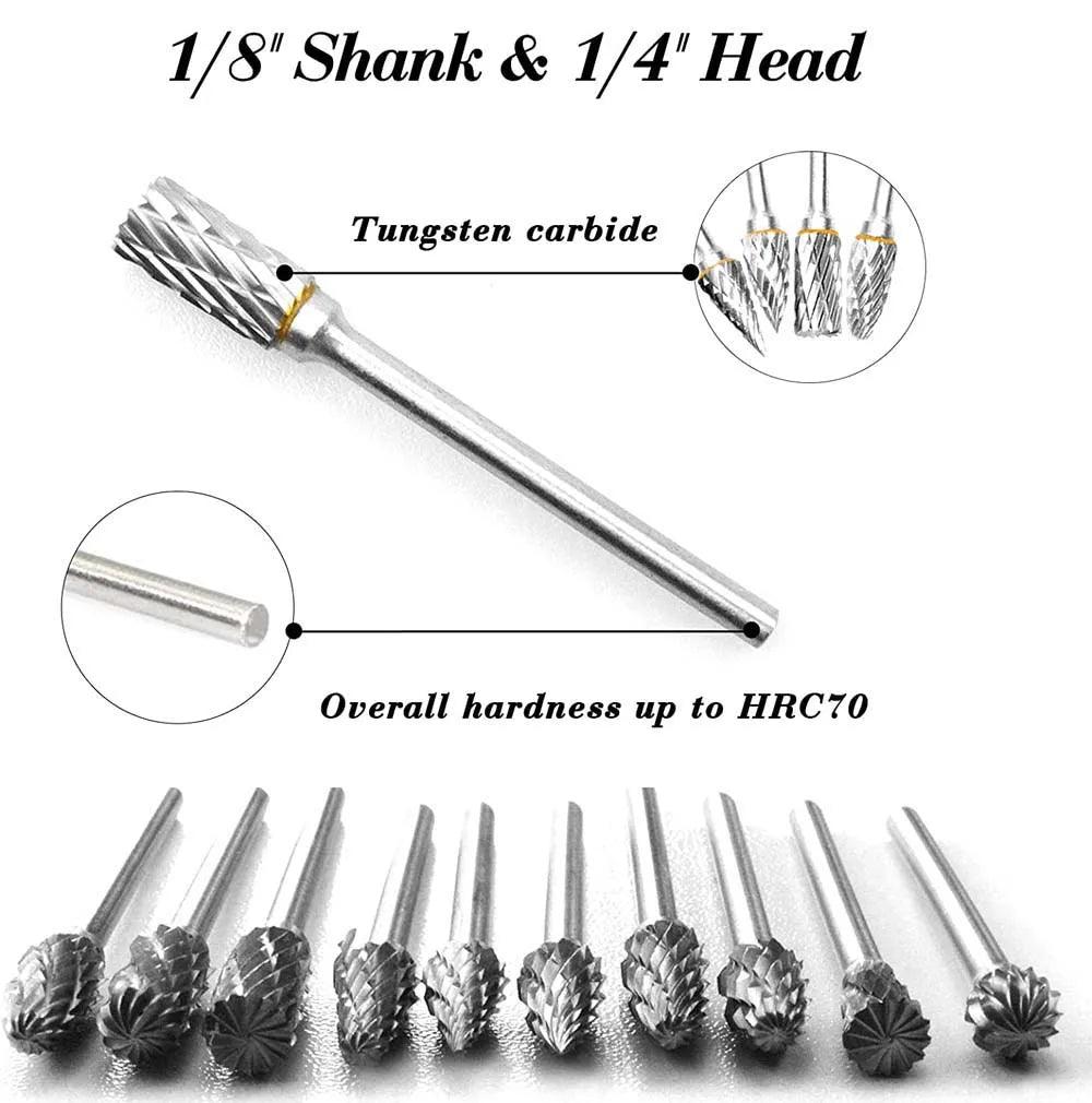 Carbide Rotary Tool Burr Set Premium Tungsten Steel Kit