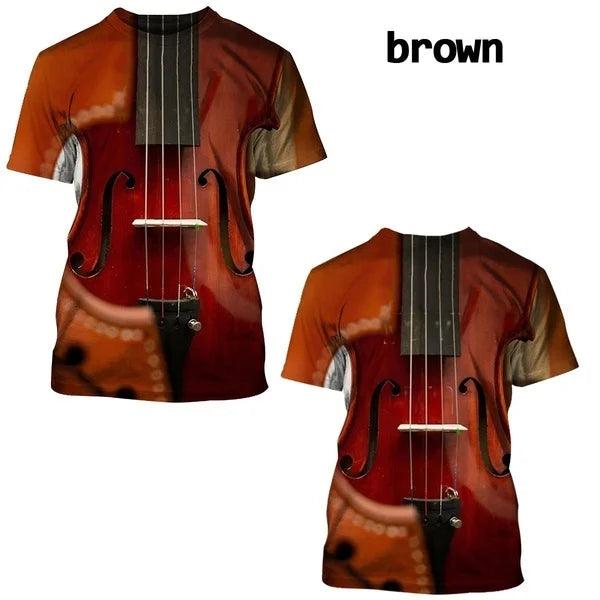 New Women Men Funny Violin Printed T Shirt Musical Instruments