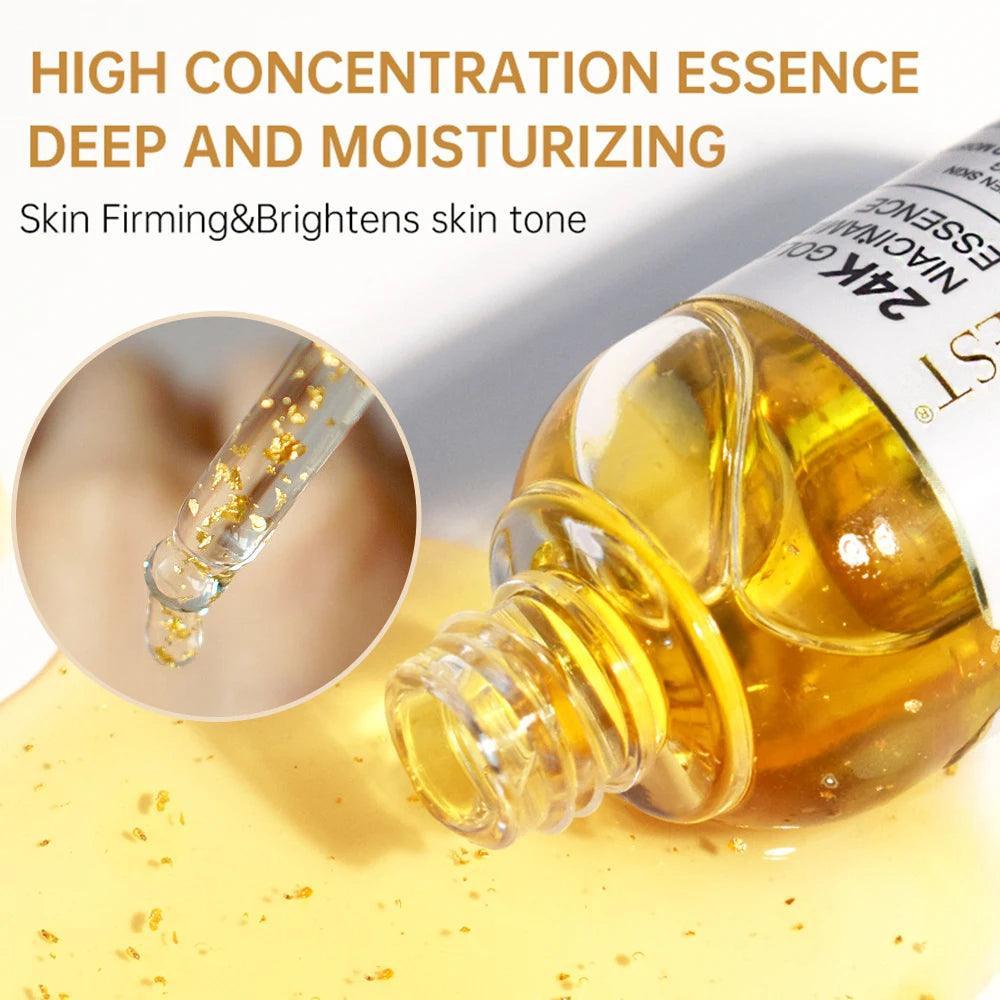 Unveil your radiance with the Anti-Wrinkle Golden Glow Radiant Skin Essence Serum 50ml, a revolutionary skincare solution designed to combat the signs of aging while imparting a luminous glow to your complexion. This luxurious serum features a unique blend of powerful ingredients, including Niacinamide and 24K Gold, to help you achieve youthful and vibrant skin.