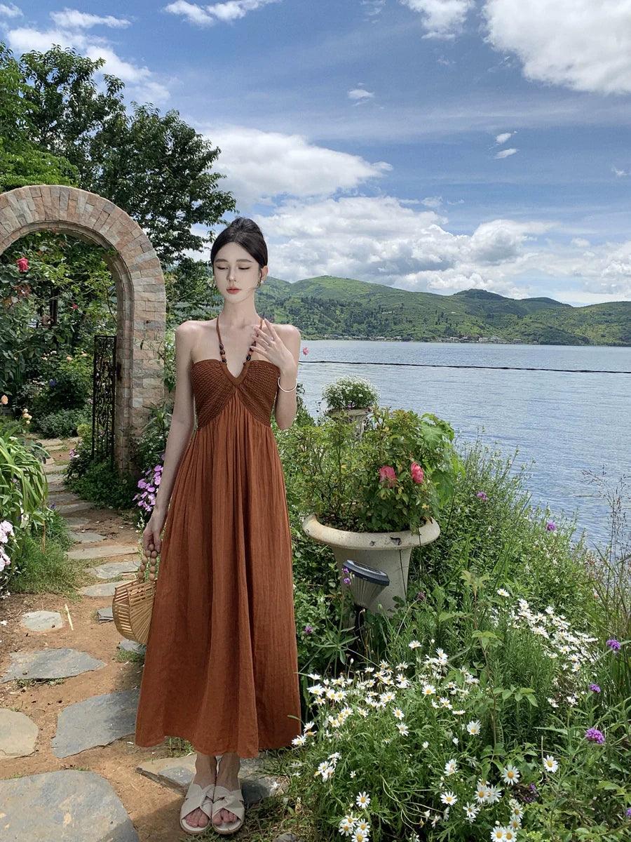 Seaside Halterneck Dress: Elegant Vacation Style Dress