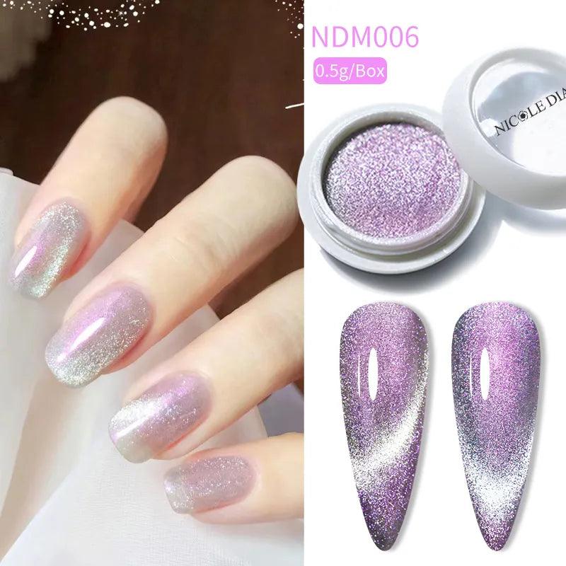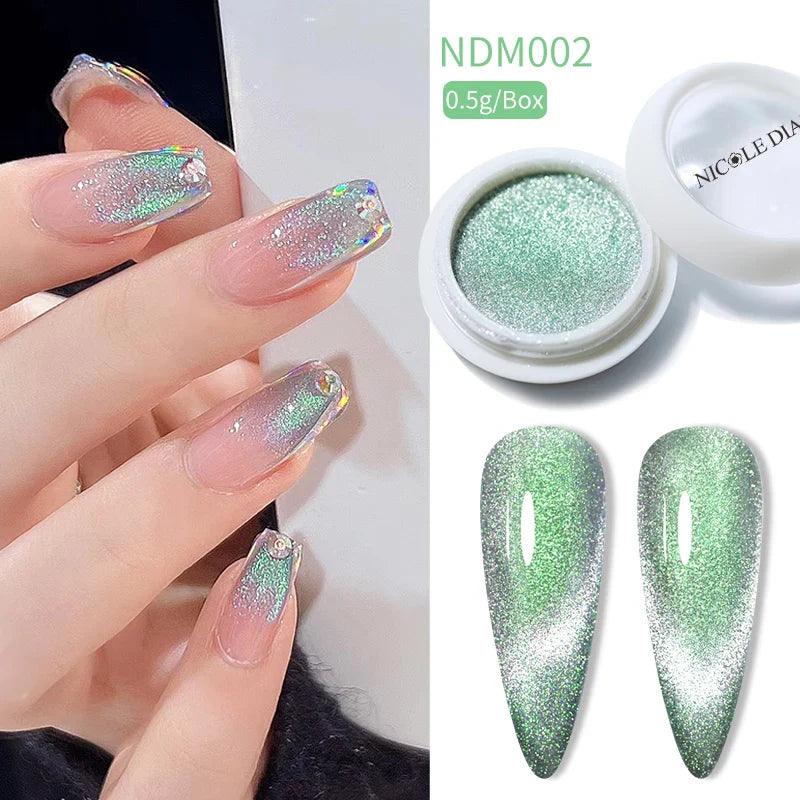 Transform your nail game with the Magnetic Nail Powder Glitter Aurora Laser Cat Effect Chrome by NICOLE DIARY. This revolutionary nail powder is designed to elevate your manicure experience, offering an eye-catching Aurora Laser Cat effect that will dazzle everyone.