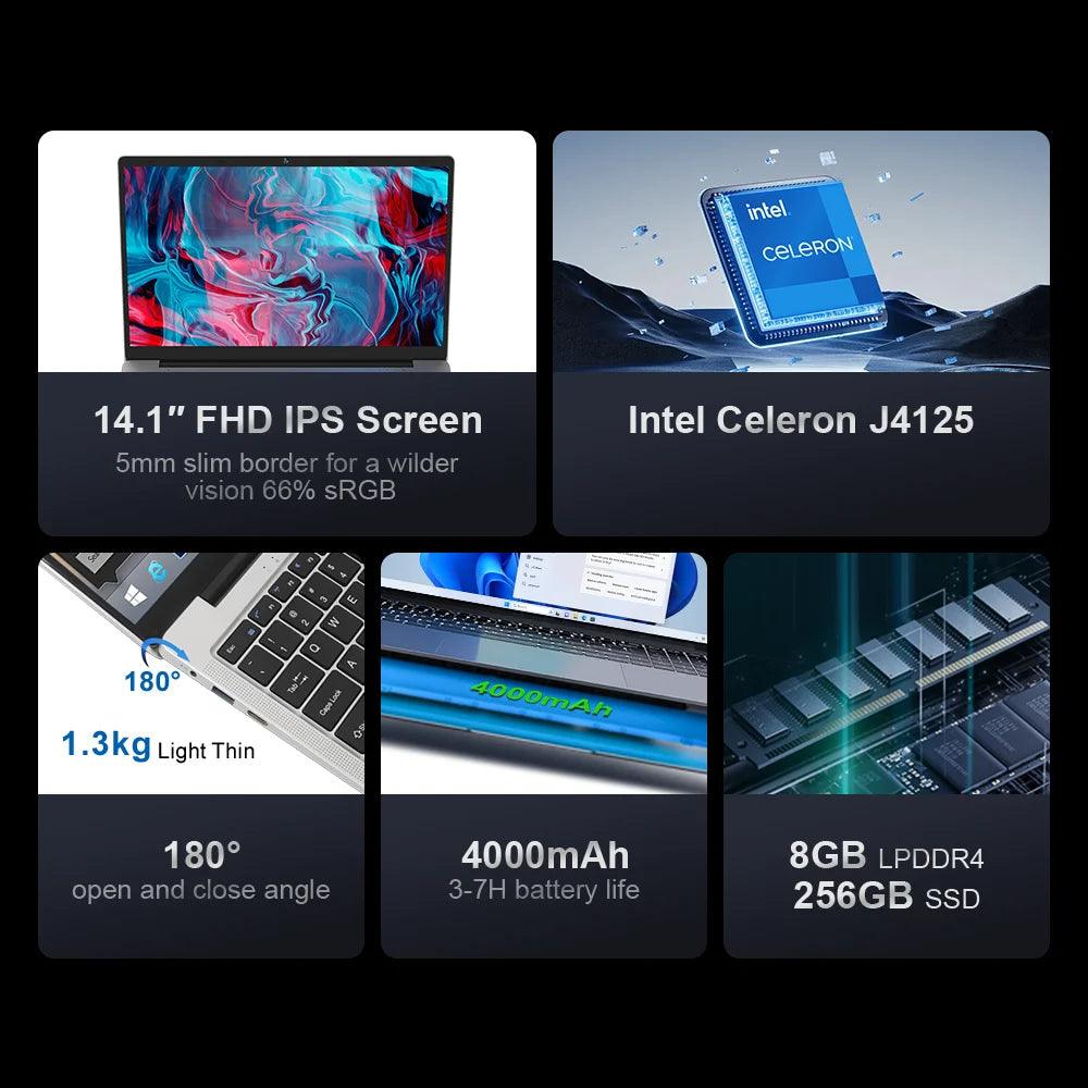 Learn more about the 2024 Ninkear N14 Air Laptop, discover its Intel Celeron capabilities, check out the 14.1inch FHD display, find information on SSD storage, and see why it’s equipped with 8GB RAM. Don't miss the benefits of Bluetooth 4.2 and the latest Windows 11 operating system. Enjoy the long battery life and lightweight design!