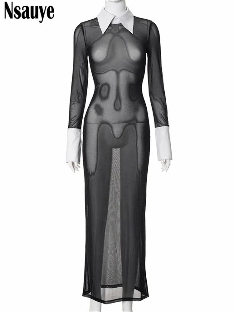 Step into the spotlight with the Evening Elegance Vintage Black Mesh Bodycon Maxi Dress, the ultimate choice for the modern woman who craves sophistication and style. This exquisite piece from Nsauye Vintage 2024 will elevate your evening wardrobe, merging vintage allure with contemporary chic for a flawless look.