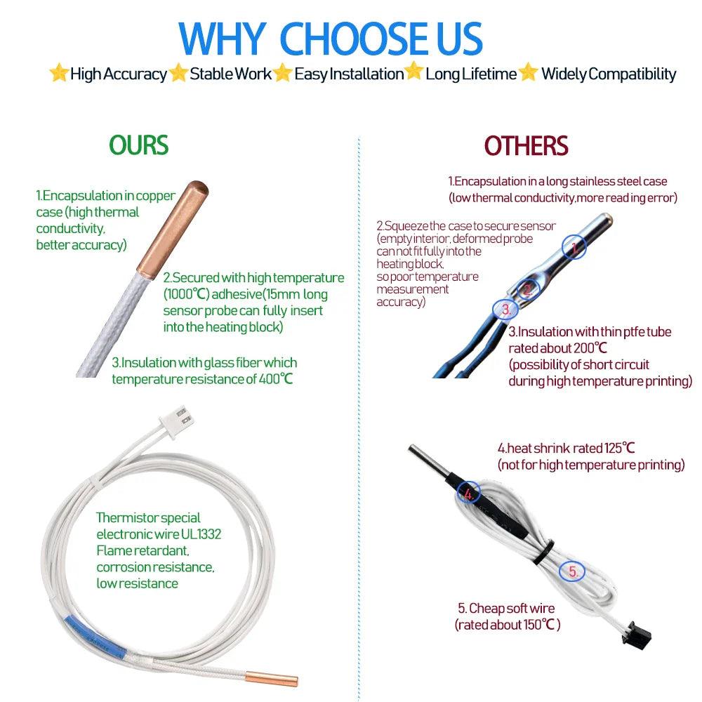 This 3D Printer Thermistor Sensor High Accuracy NTC Fast Response not only enhances the accuracy and efficiency of your 3D prints but also ensures durability and reliability in high-temperature scenarios. Invest in this high-quality sensor to elevate your 3D printing experience.